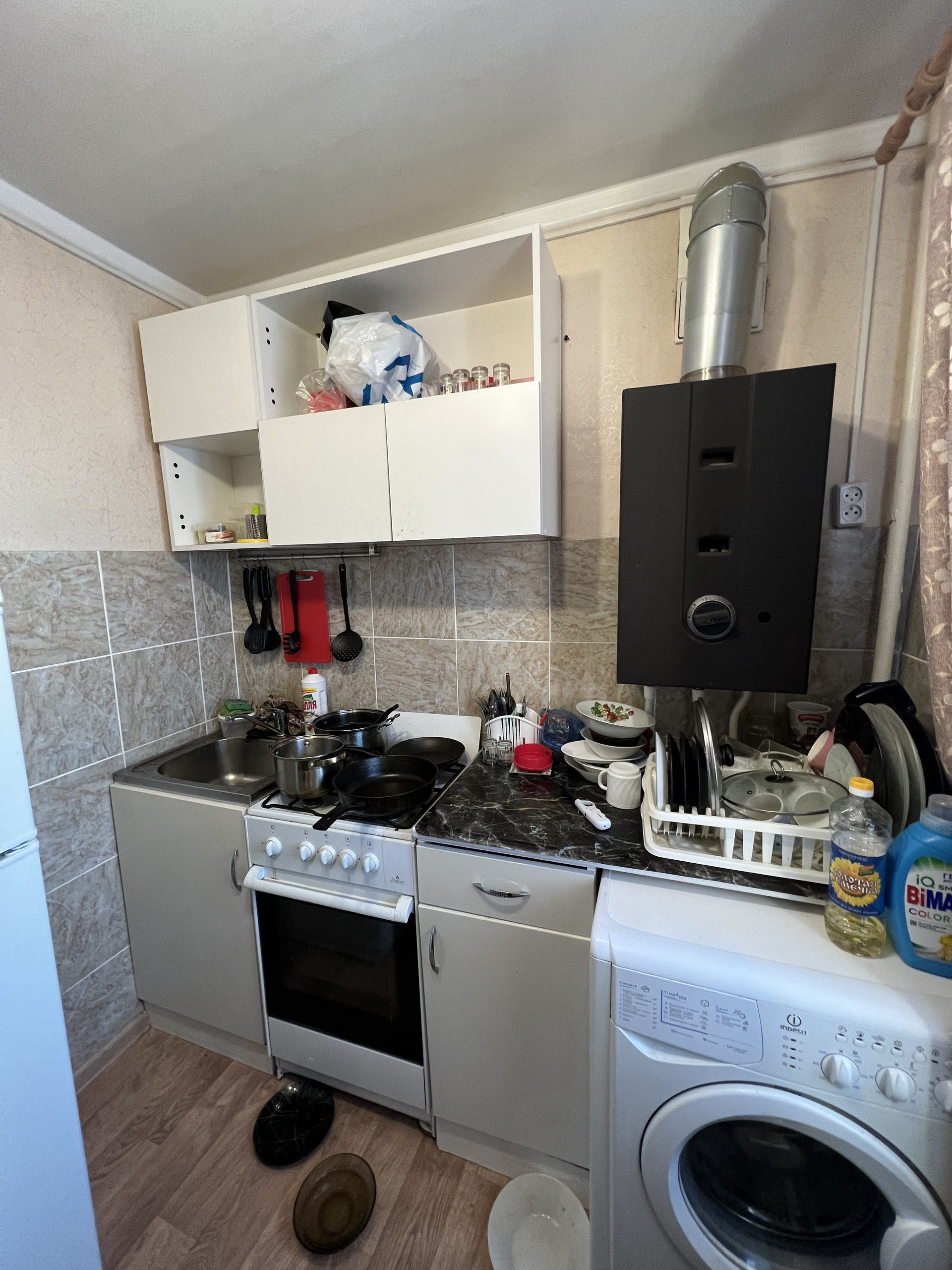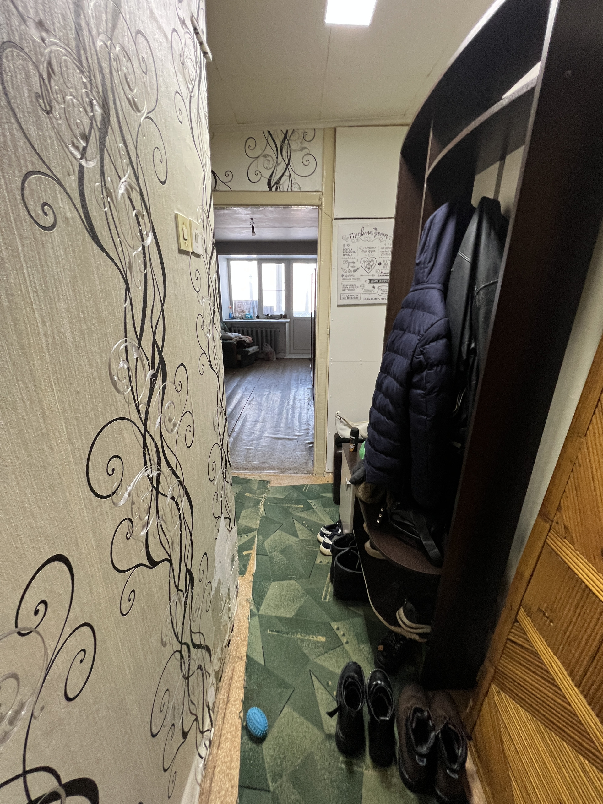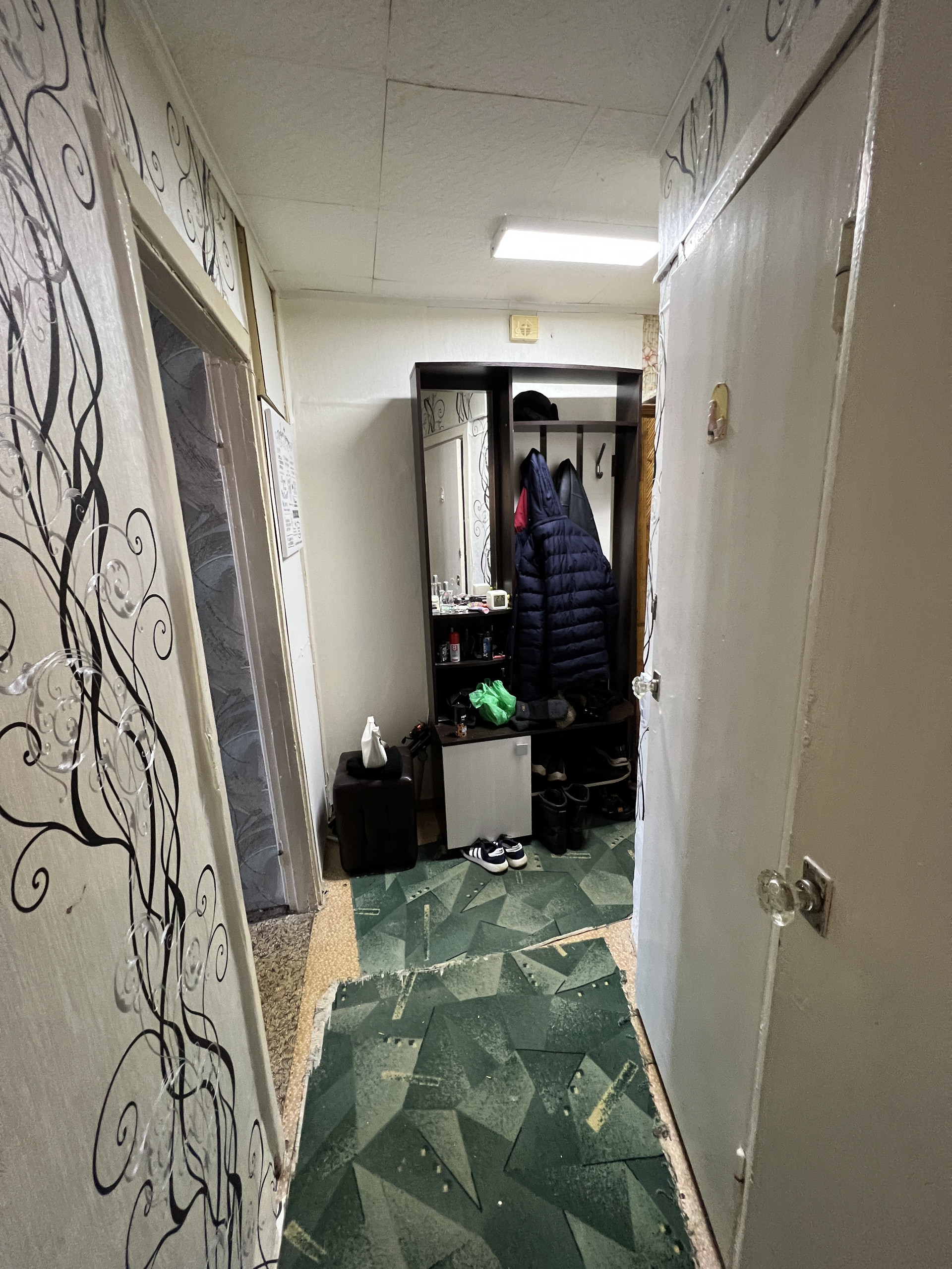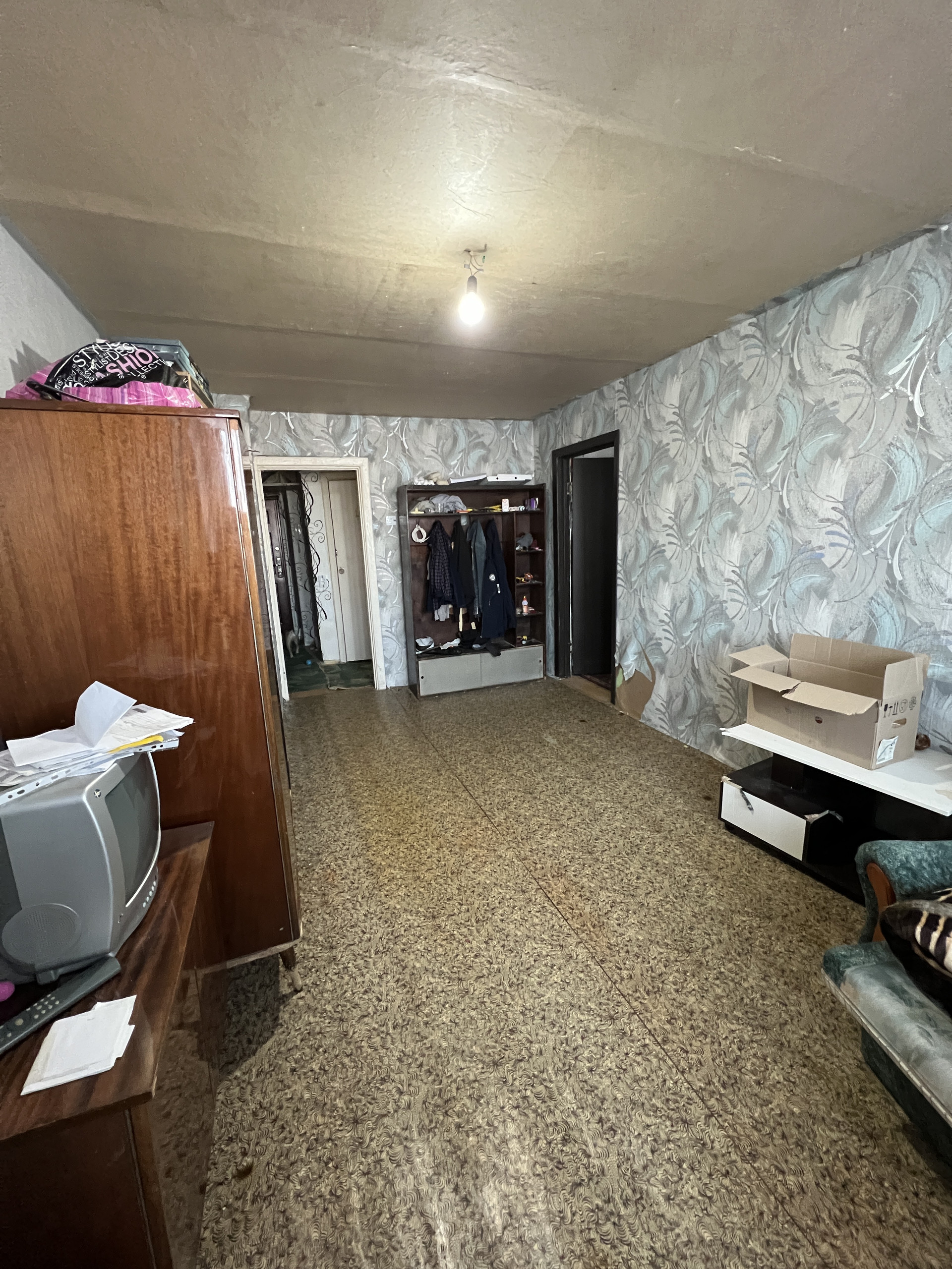 Квартира требует косметического ремонта. Соседи спокойные, подъезд только после ремонта.