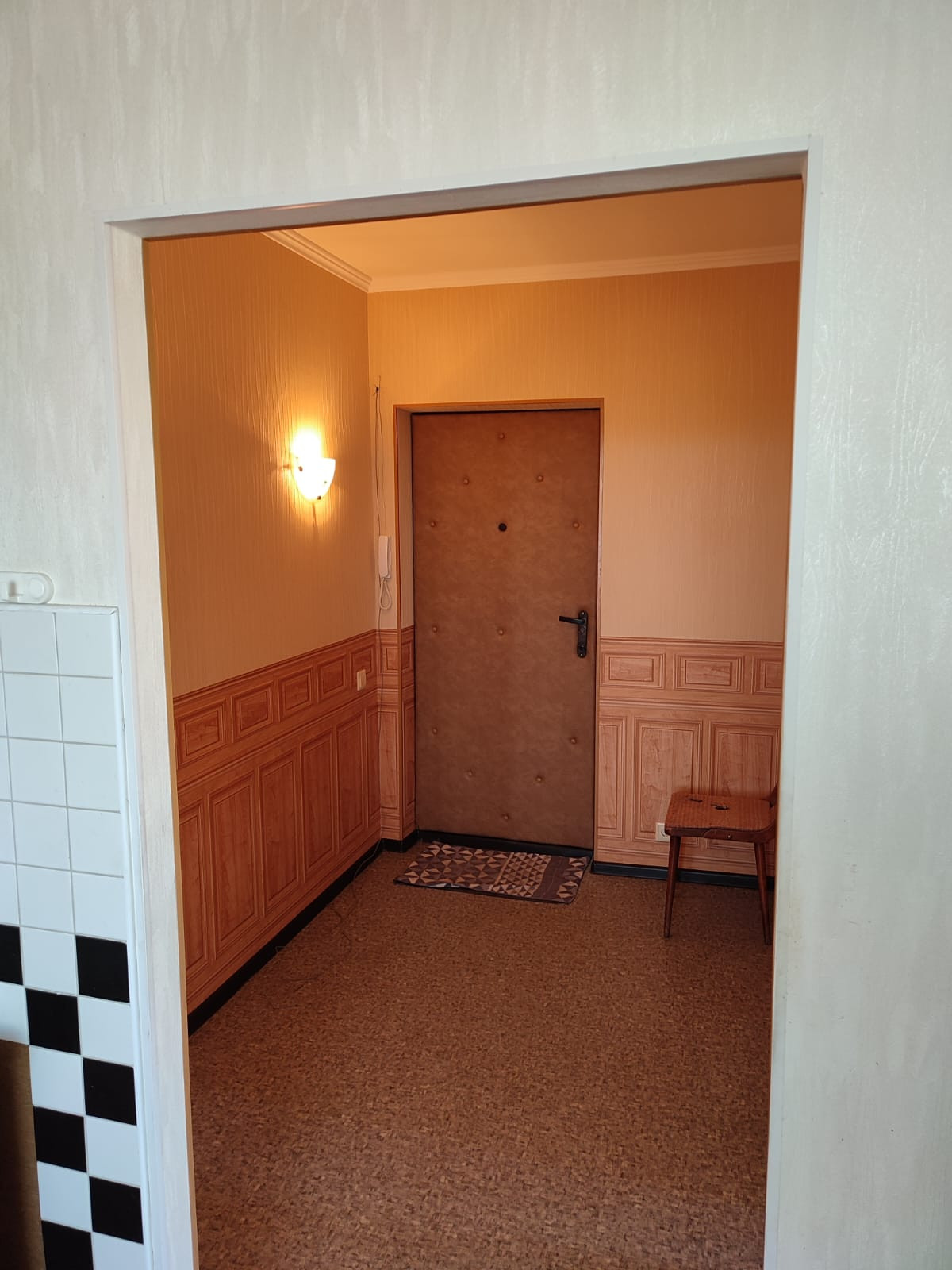 В прихожей на полу (линолеум)