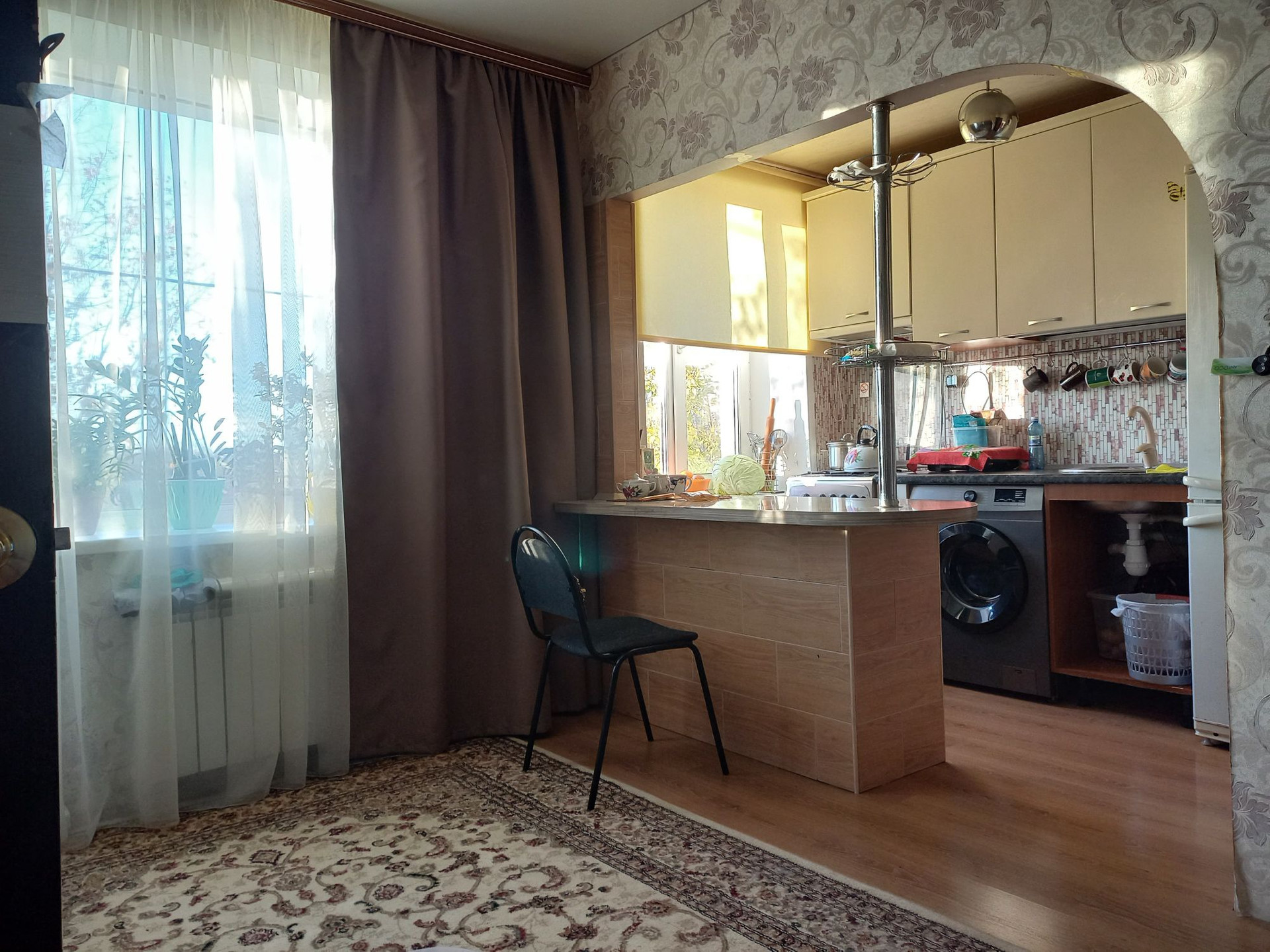 2 изолированных комнаты,зал совмещен с кухней, ванна и туалет совмещенные. квартира тёплая,окна выходят на одну сторону.