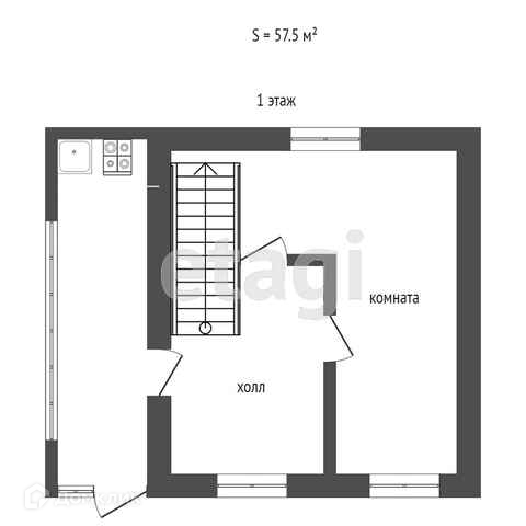 Общая площадь 57.5 м2