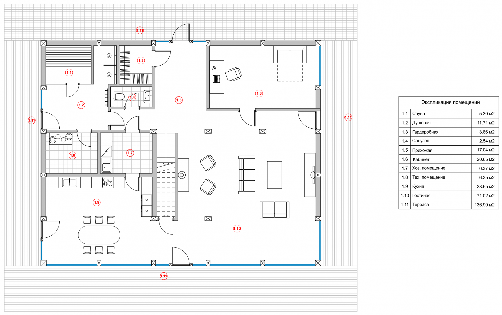 Первый этаж — это свет и воздух. Огромная гостиная в 70м2, просторная кухня и столовая: здесь дети играют и не тревожат родителей, здесь можно устроить вечеринку даже на 30 гостей! А так же посетить спа-зону, снять усталость от городской суеты или уединиться в рабочем кабинете.