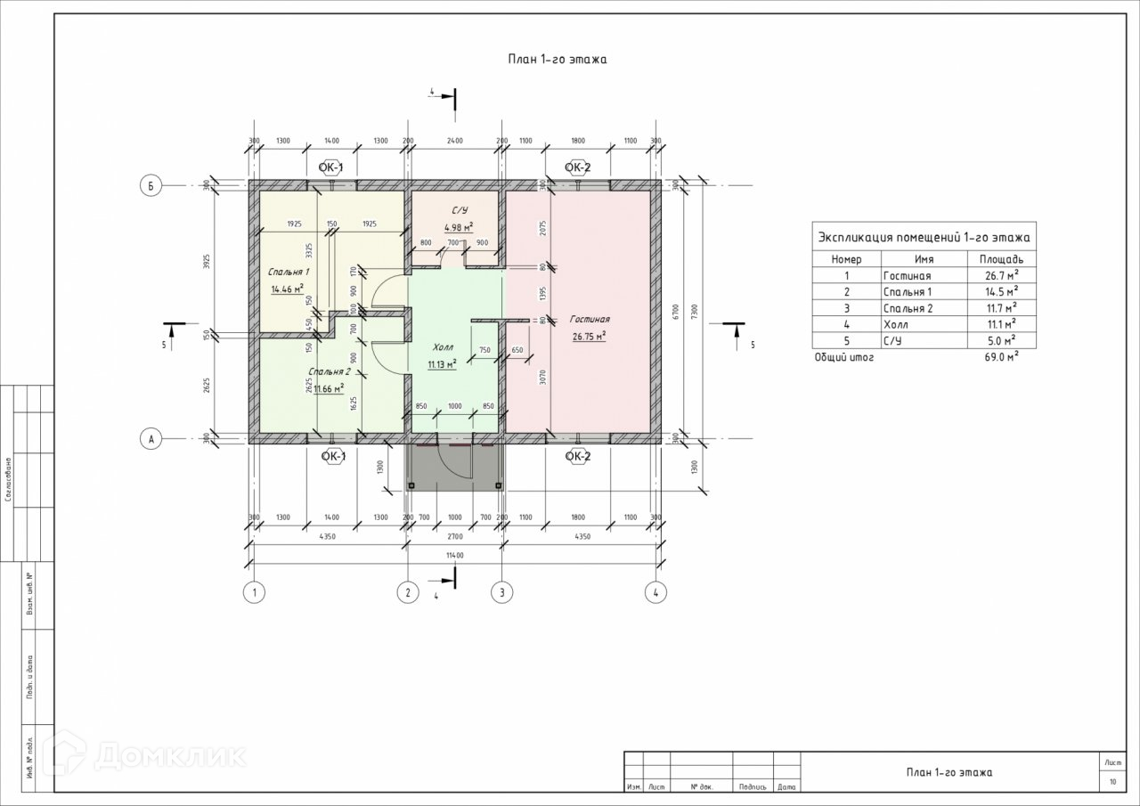 Общая площадь 70 м2