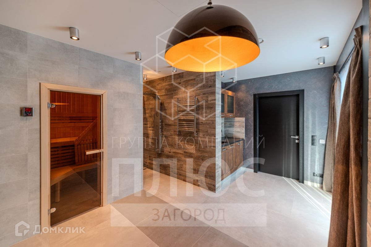 На первом этаже предусмотрены: просторная кухня-столовая с выходом на террасу, зона гостиной отделена лестницей на второй этаж, логически разделяя общее пространство. Камин установлен на круговом диске, можно повернуть в любую сторону. При входе, сделана большая spa-зона с комнатой отдыха с электрической сауной, установлена массажная система. Напротив сауны - кабинет или жилая комната, рядом сан.узел и постирочная.