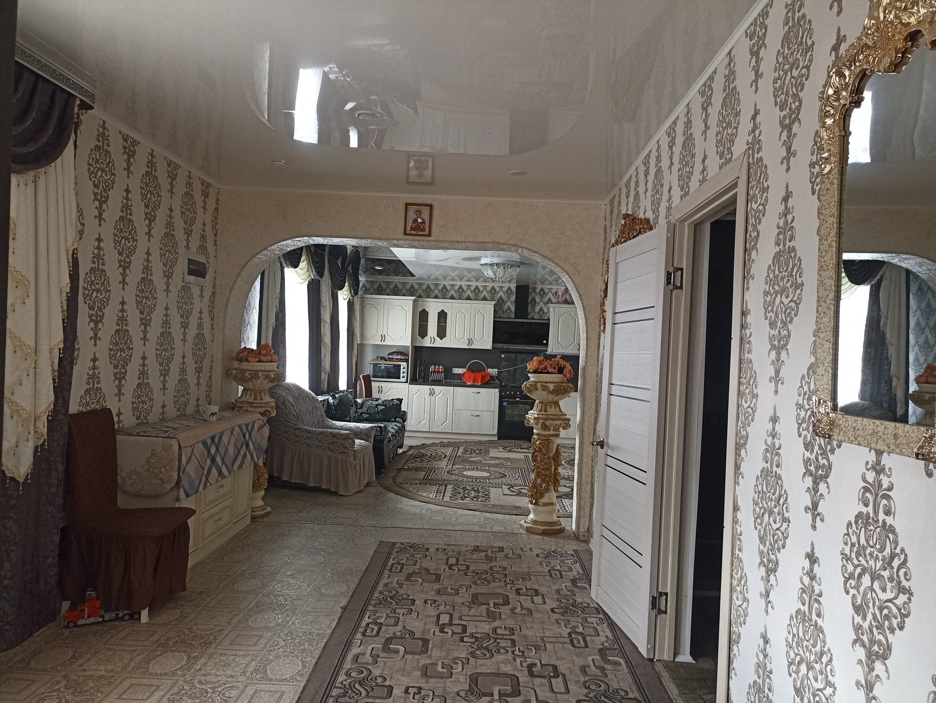 Дом в отличном состоянии. Сделана дорогая штукатурка по всему дому и проведен дополнительный свет и подсветка. Все коммуникации в доме и индивидуальное отопление, участок ровный, есть хоз постройки и заложен фундамент под баню.