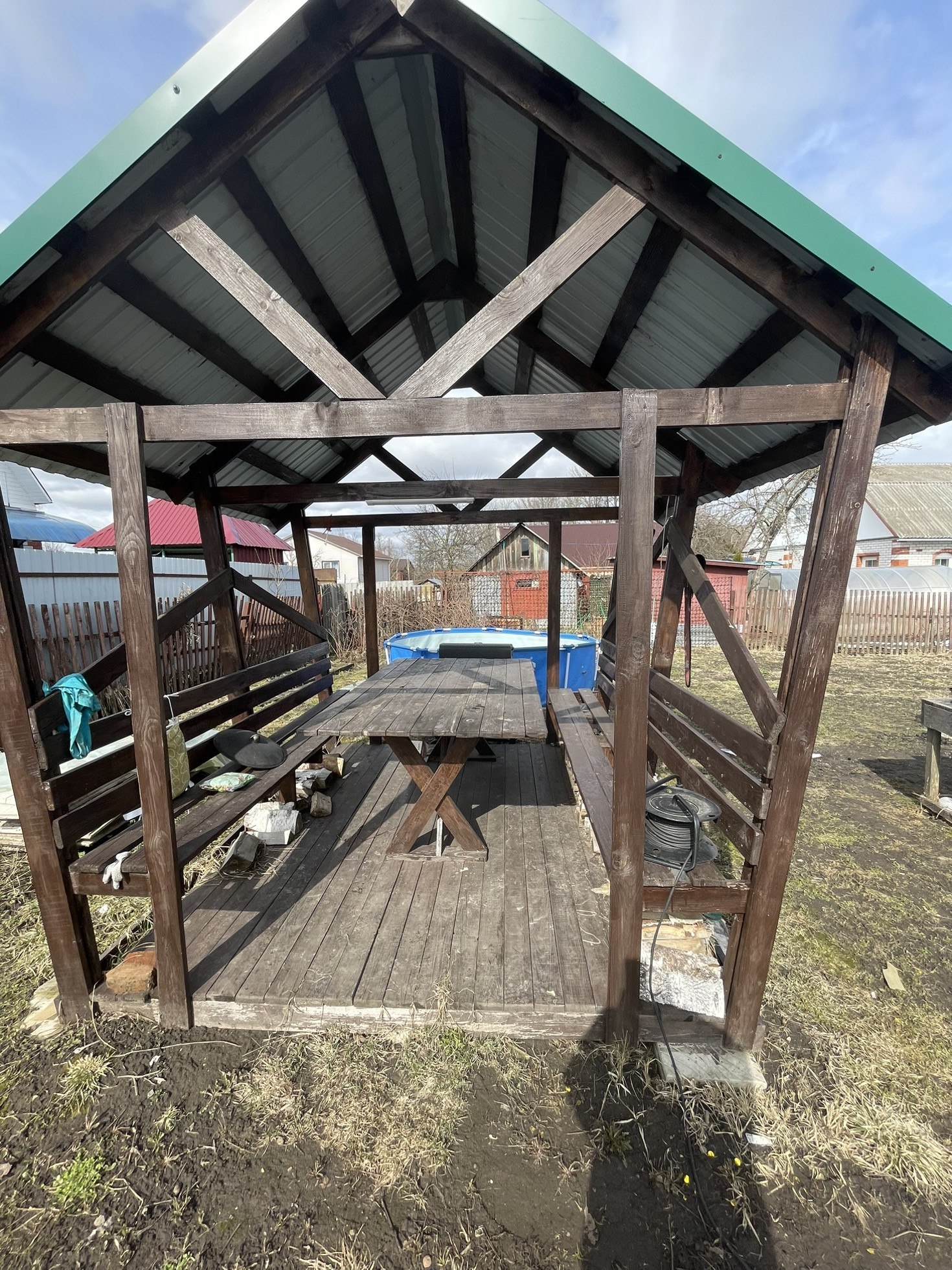✅ Металический забор и ворота, есть заезд для машины.