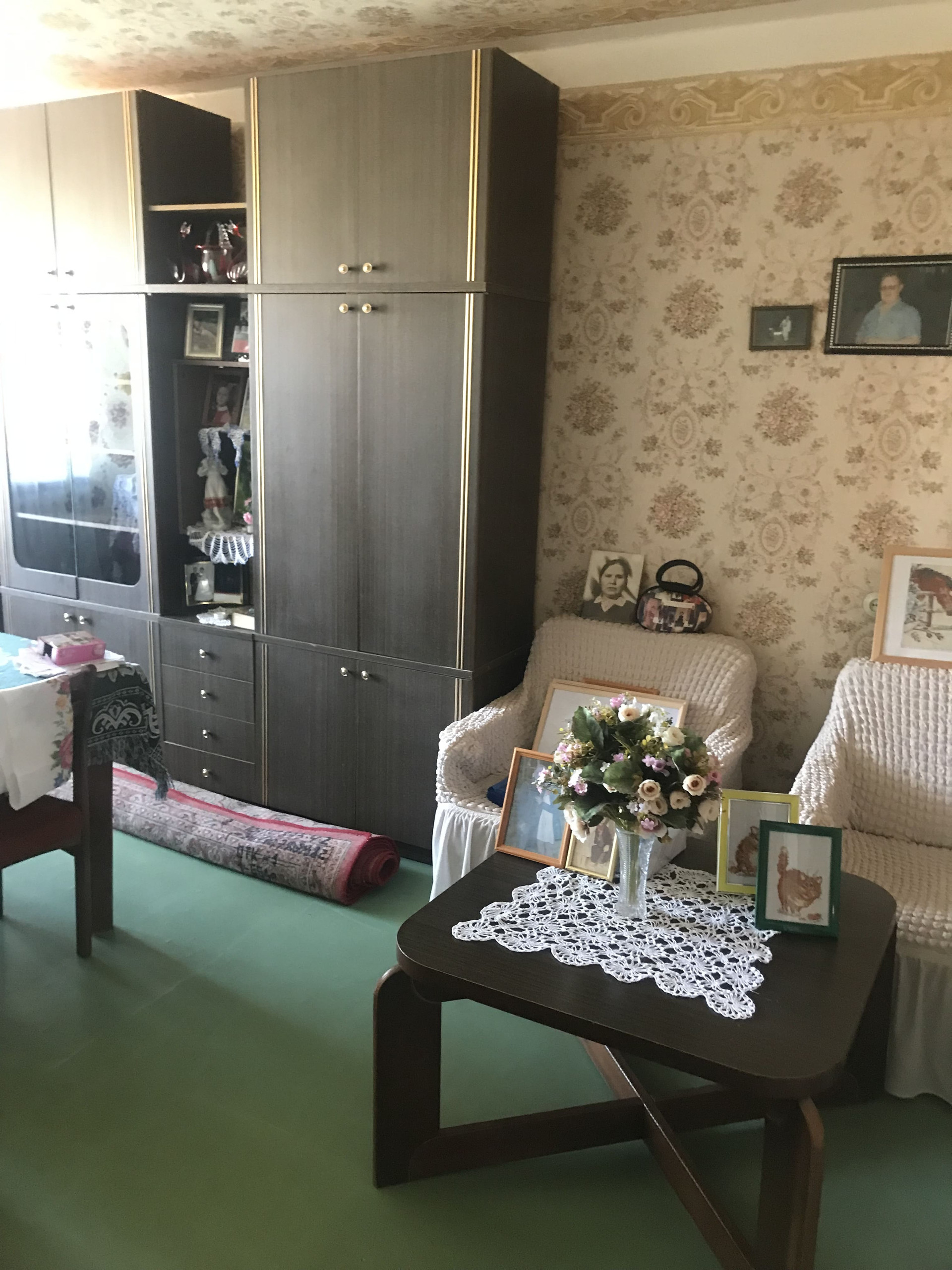 В квартире окна простые, 2 балкона не застеклены. Квартира тёплая, светлая, сухая. Чистый подъезд, установлен домофон. Хорошие соседи. Двор дома заасфальтирован  и имеет озеленение.