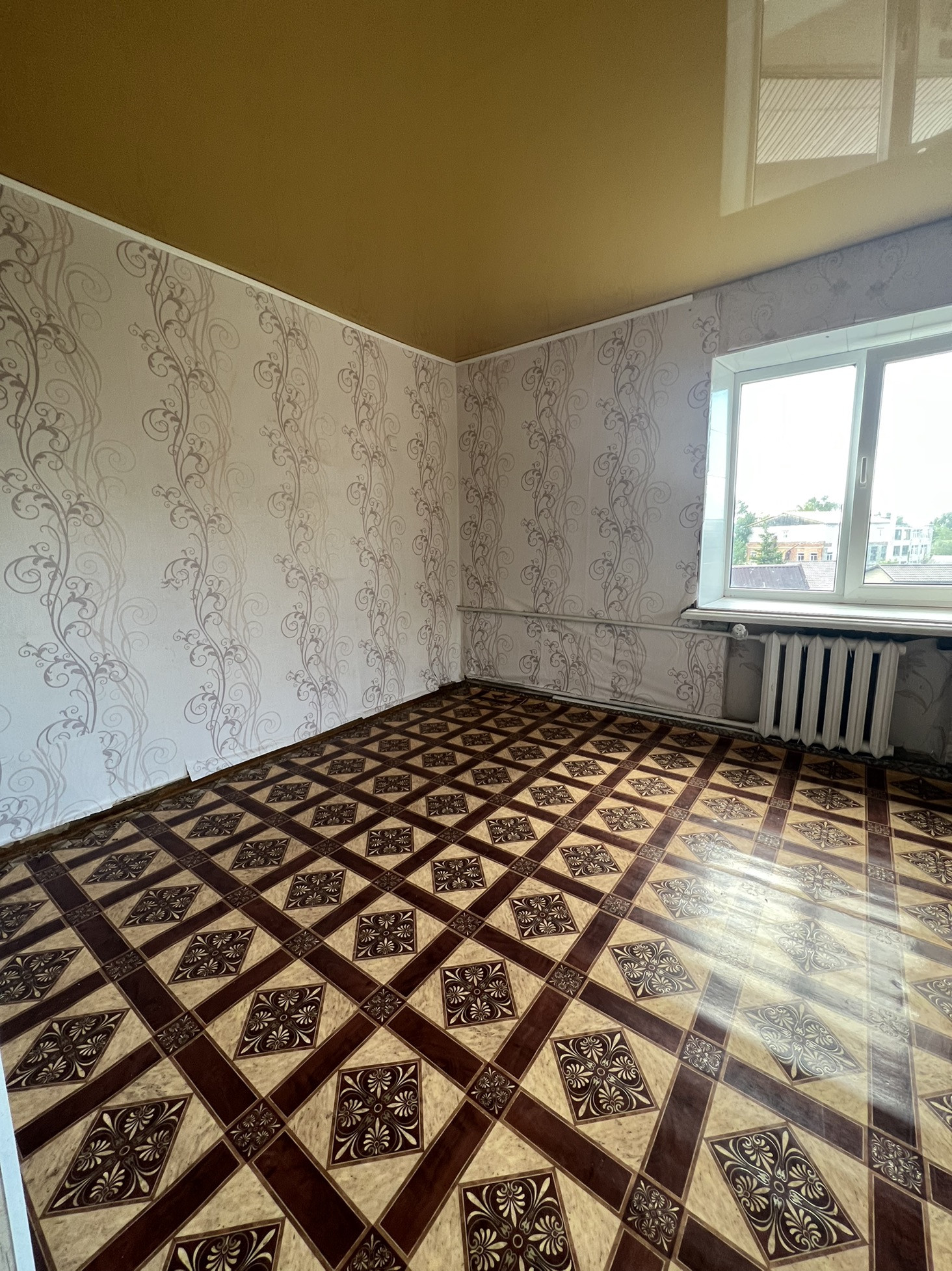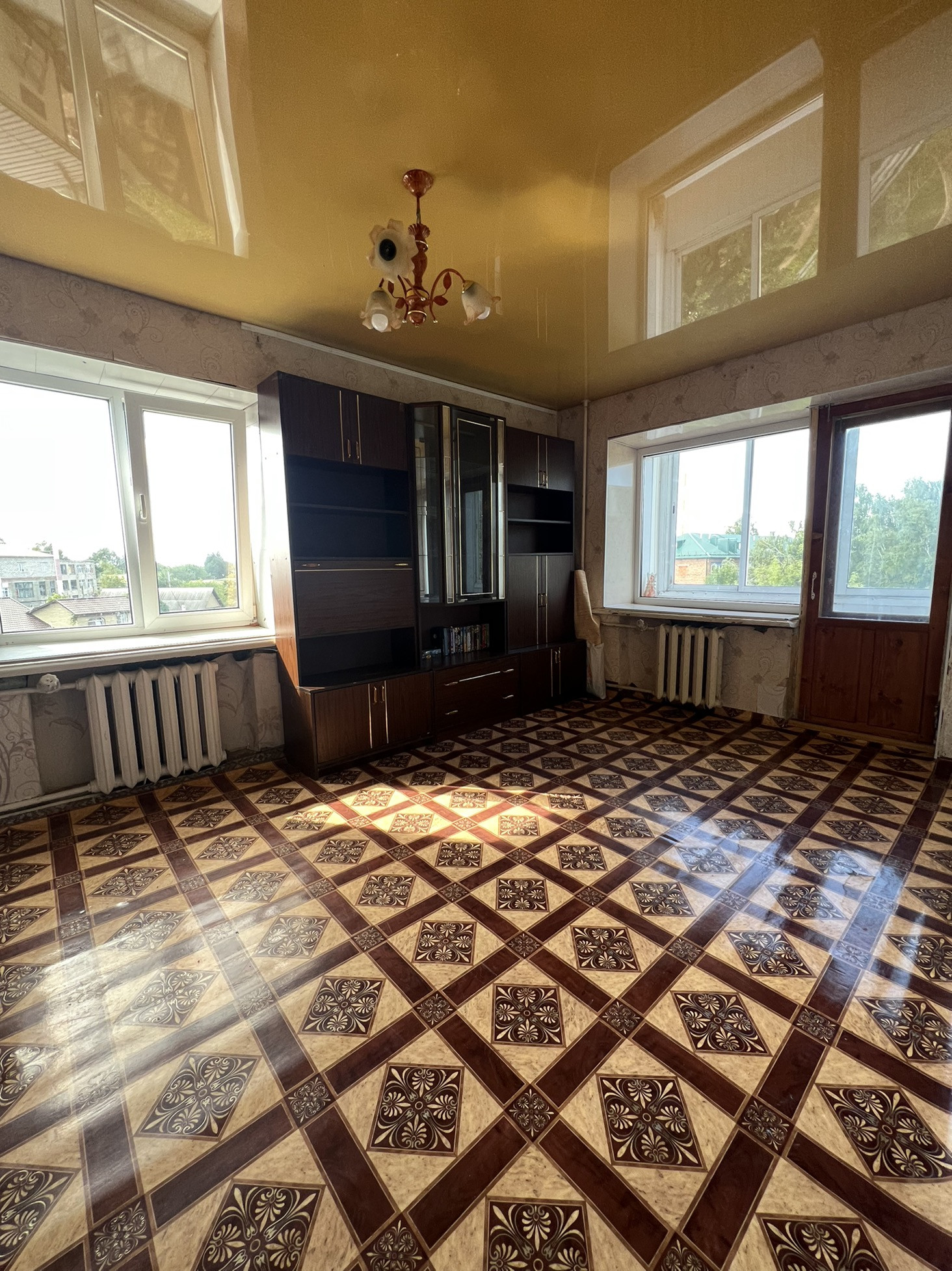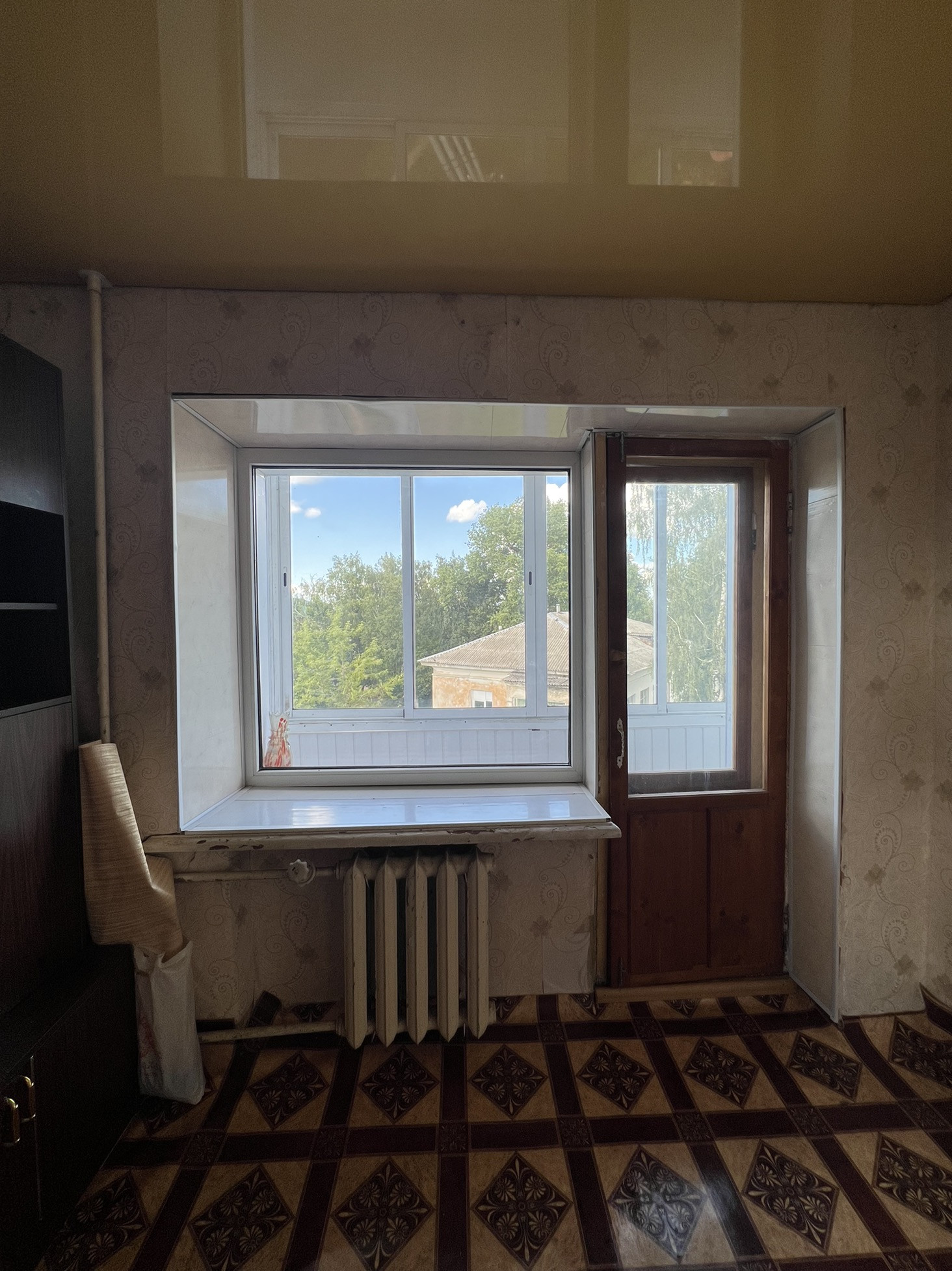 Комната просторная , очень светлая с выходом на балкон. Балкон застеклен