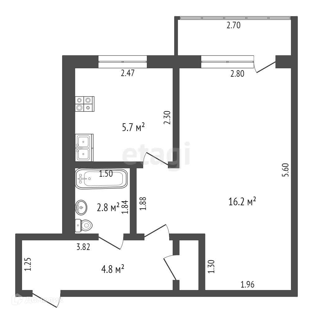 Площадь кухни 5.7 м2