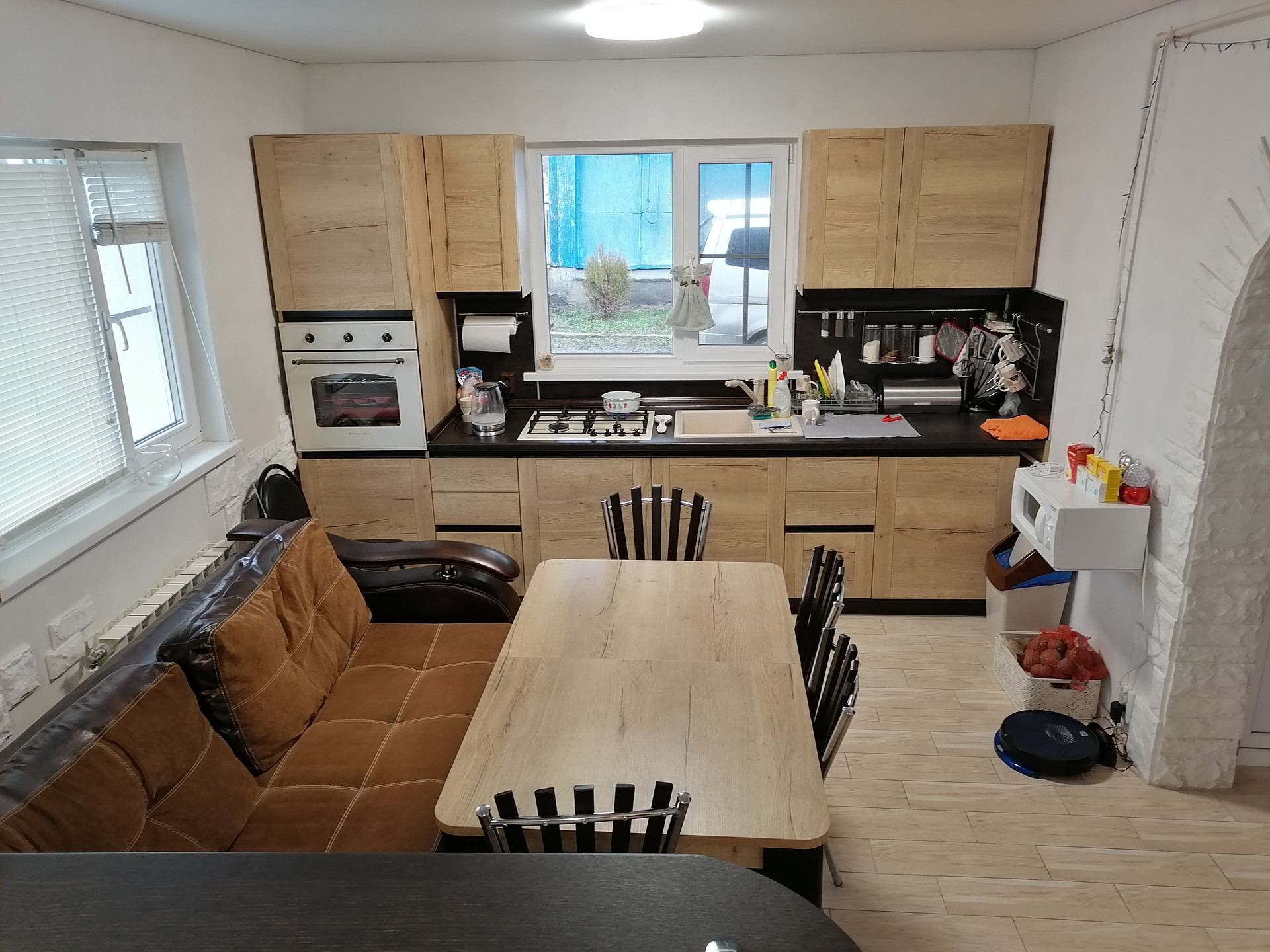 Новый котёл, тёплый пол, диодный свет, окна пластик, дом бревно ДУБ кухня силикат, полы ламинат и кафель, санузел кафель, вода центральная, гараж 8х10 две ямы силикат печь, три площадки под плиткой, место под бассейн ф4м, мангал , горка с можжевельником, огородик, курятник и хоз. двор, придомовая территория. Приезжайте смотрите может, что упустил. Мебель по договорённости.