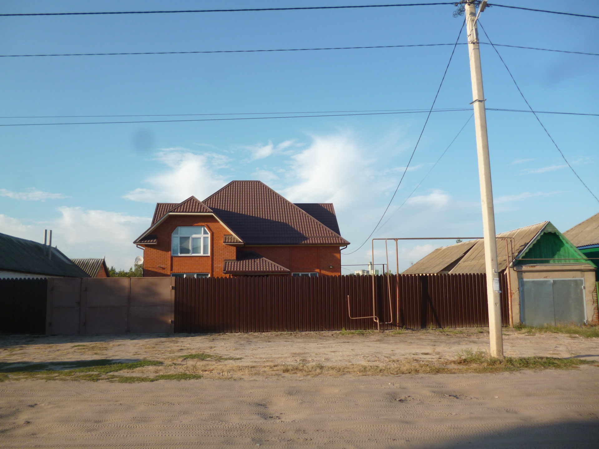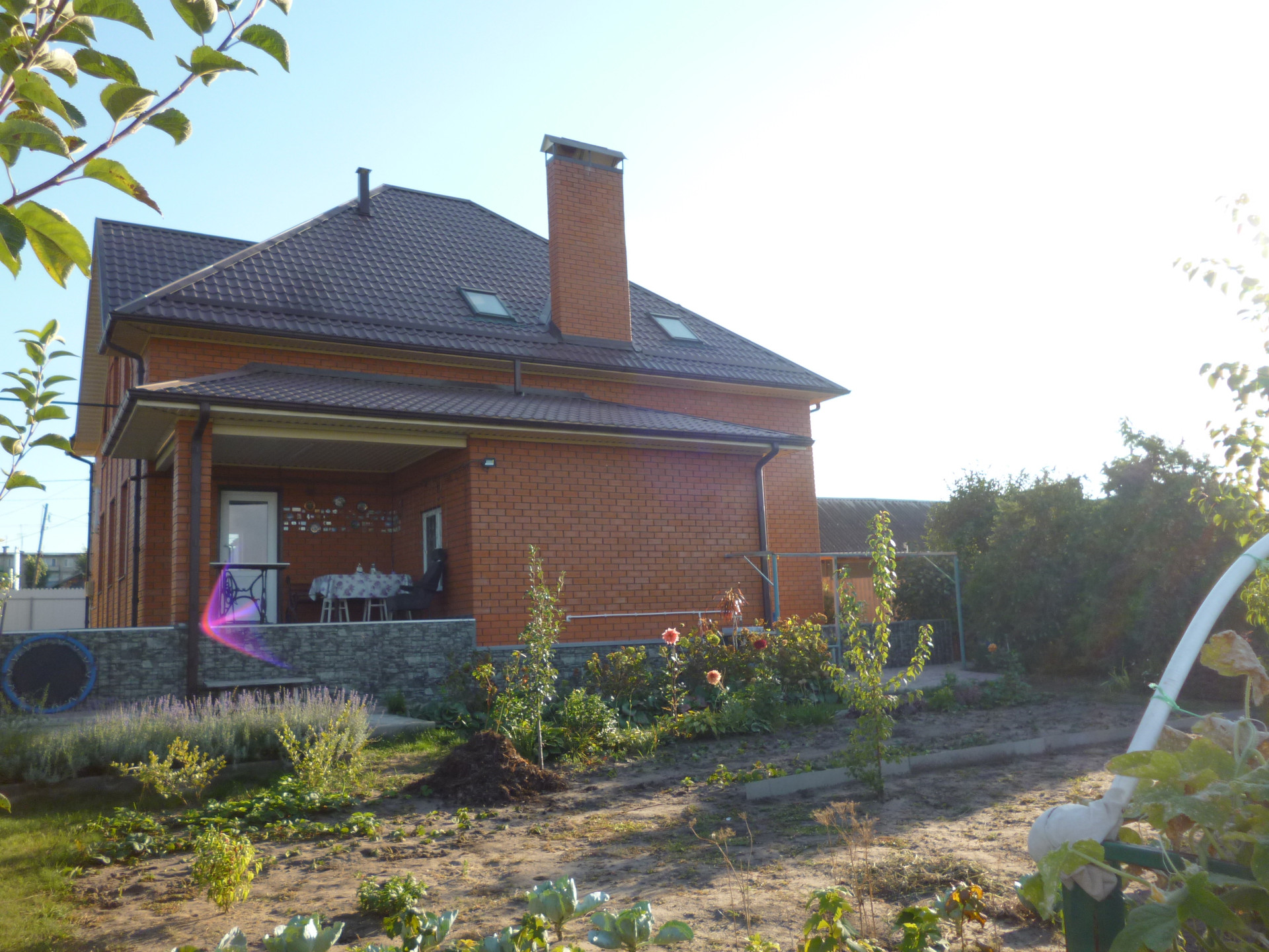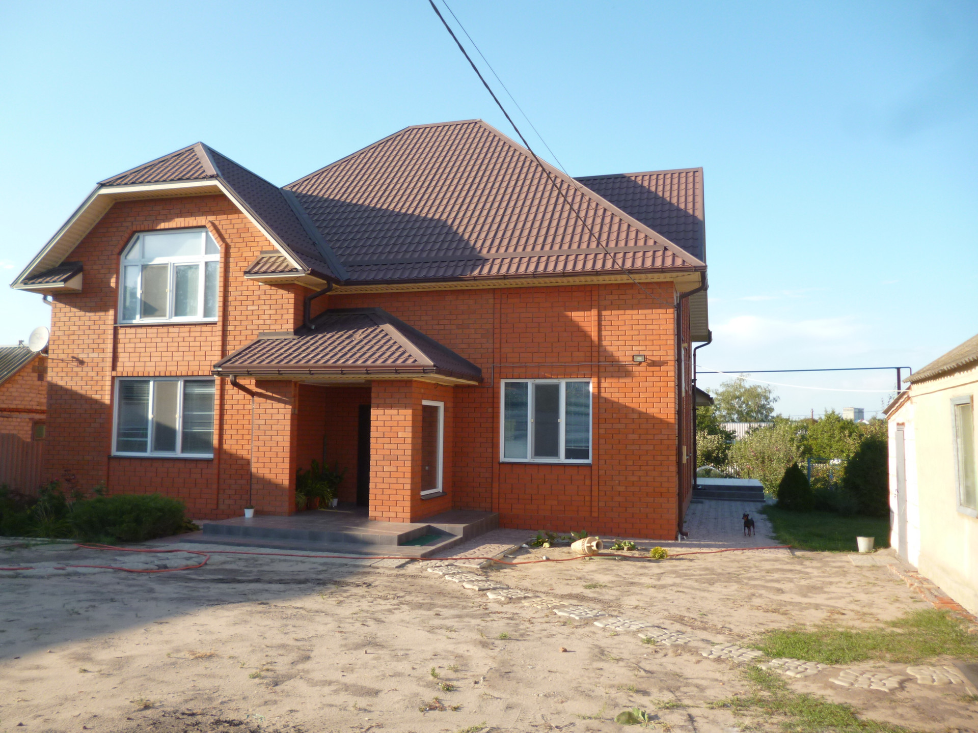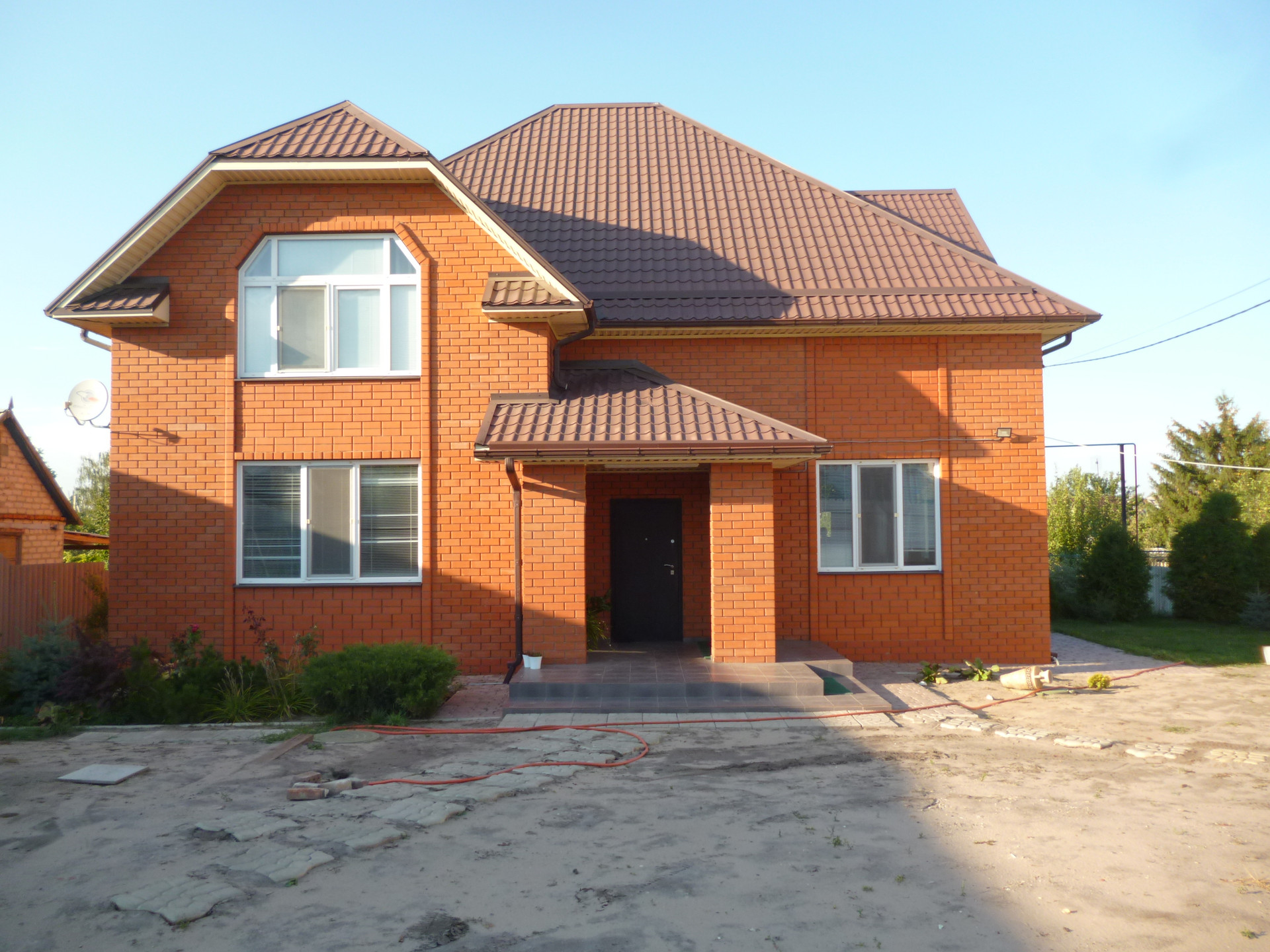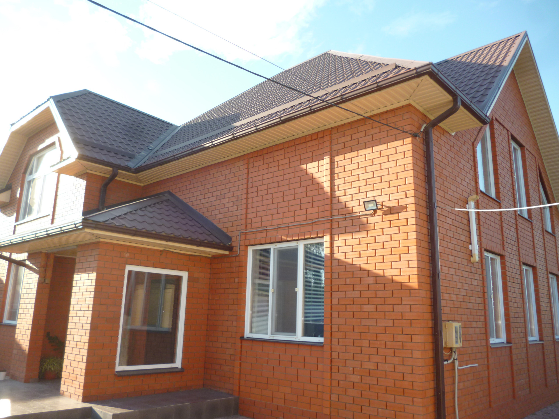 -крыша монолитная металлочерепица (не будет выгорать), двускатная разноуровневая. крыша утеплена пеноплексом и керамзитом 40 см.