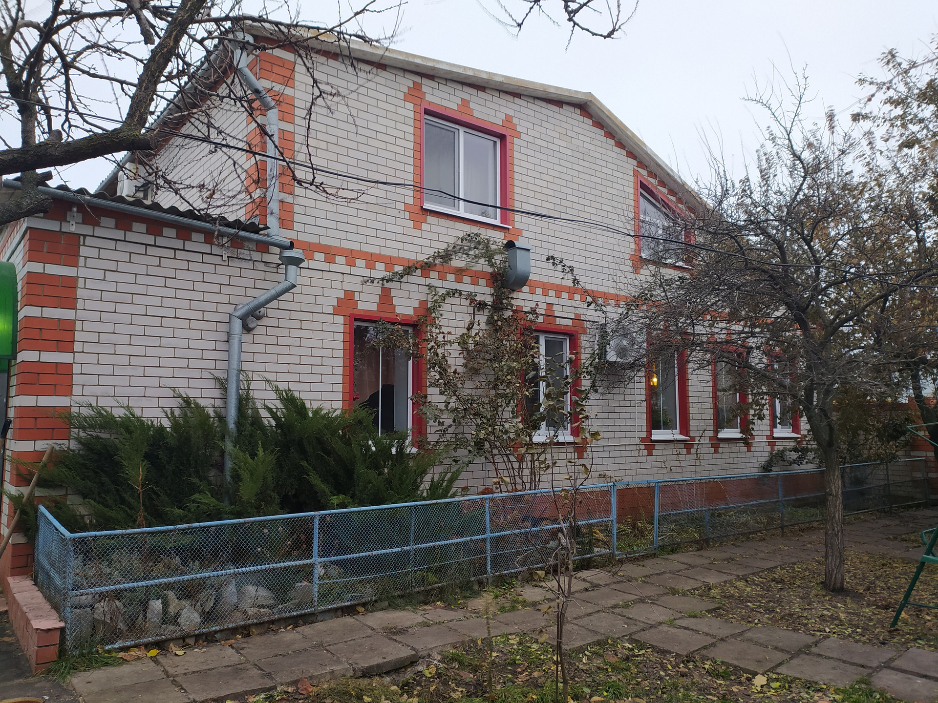 В уютном городе - районном центре на юге Воронежской области продается дом. Двух этажный, фундамент литой шлакоблок + бетонные блоки. Первый этаж литой шлак, обложен двумя рядами кирпича, второй этаж - газосиликатные блоки - обложен кирпичом. Крыша шифер. На первом этаже холл с гардеробной, кухня, раздельный санузел, гостиная и спальня, на втором этаже две спальни и большой холл. Участок с огородом  отделен заборчиком. Двор заасфальтирован, дорожки плиткой, клумбы. Большой плодоносящий сад, колодец. Хороший гараж под легковую машину + два помещения + подвал + большой чердак. Отдельно заведено 380 вольт. Баня с кухней и большой беседкой.