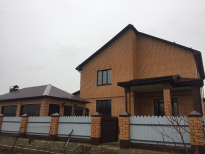Новый, современный дом. Построен и введён в эксплуатацию в 2016 году. Электроэнергия, газ, вода (скважина), канализация (2 ямы), все имеется. Дом из газосиликатных блоков, утеплён пеной и обложен облицовочным кирпичом, крыша металлочерепица, двор выложен плиткой и постелена газонная трава. На участке: гараж с автоматическими воротами, закрытая беседка с камином. Огорожена зона сада и огорода, посажены плодовые деревья, имеется уличный душ и туалет.