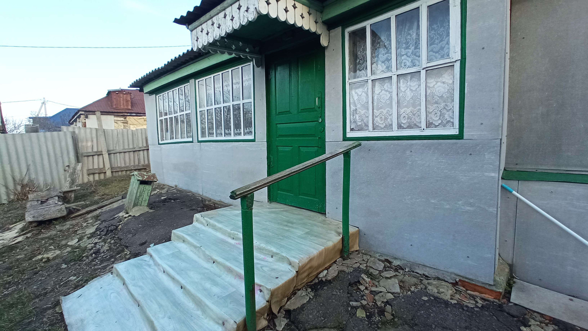 В доме никто не живёт, но усадьба в ухоженном состоянии. Широкий, ровный участок. Огород разработан, прекрасный яблоневый сад. Также есть другие плодовые деревья: орех, вишня, абрикос, слива.