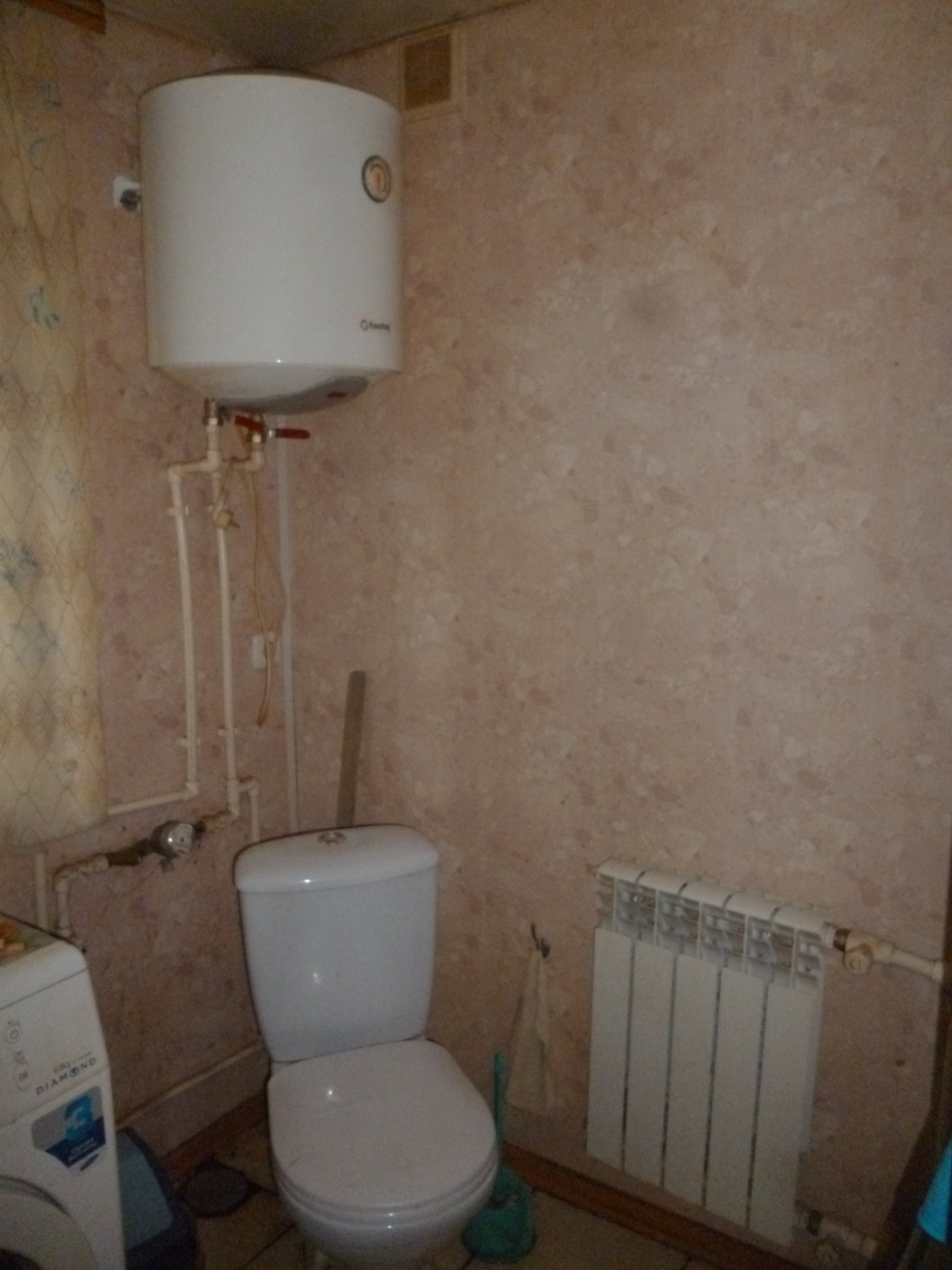 В доме есть туалет, ванная, свет, телевидение, вода, установлена стиральная машинка, установлен бойлер.