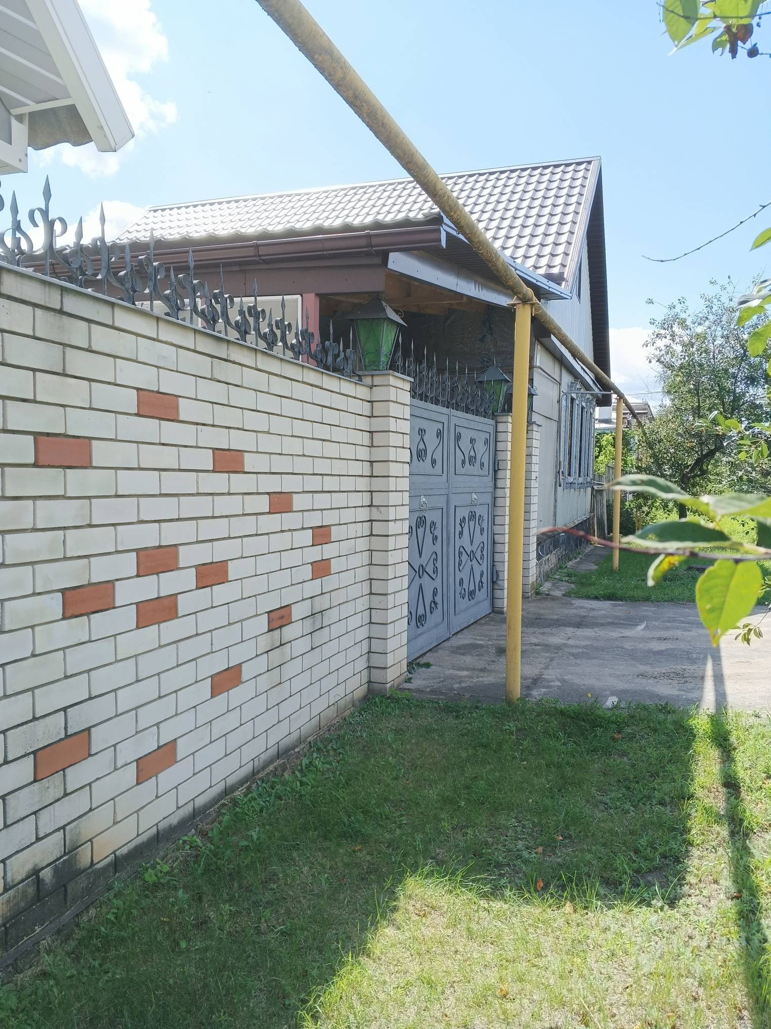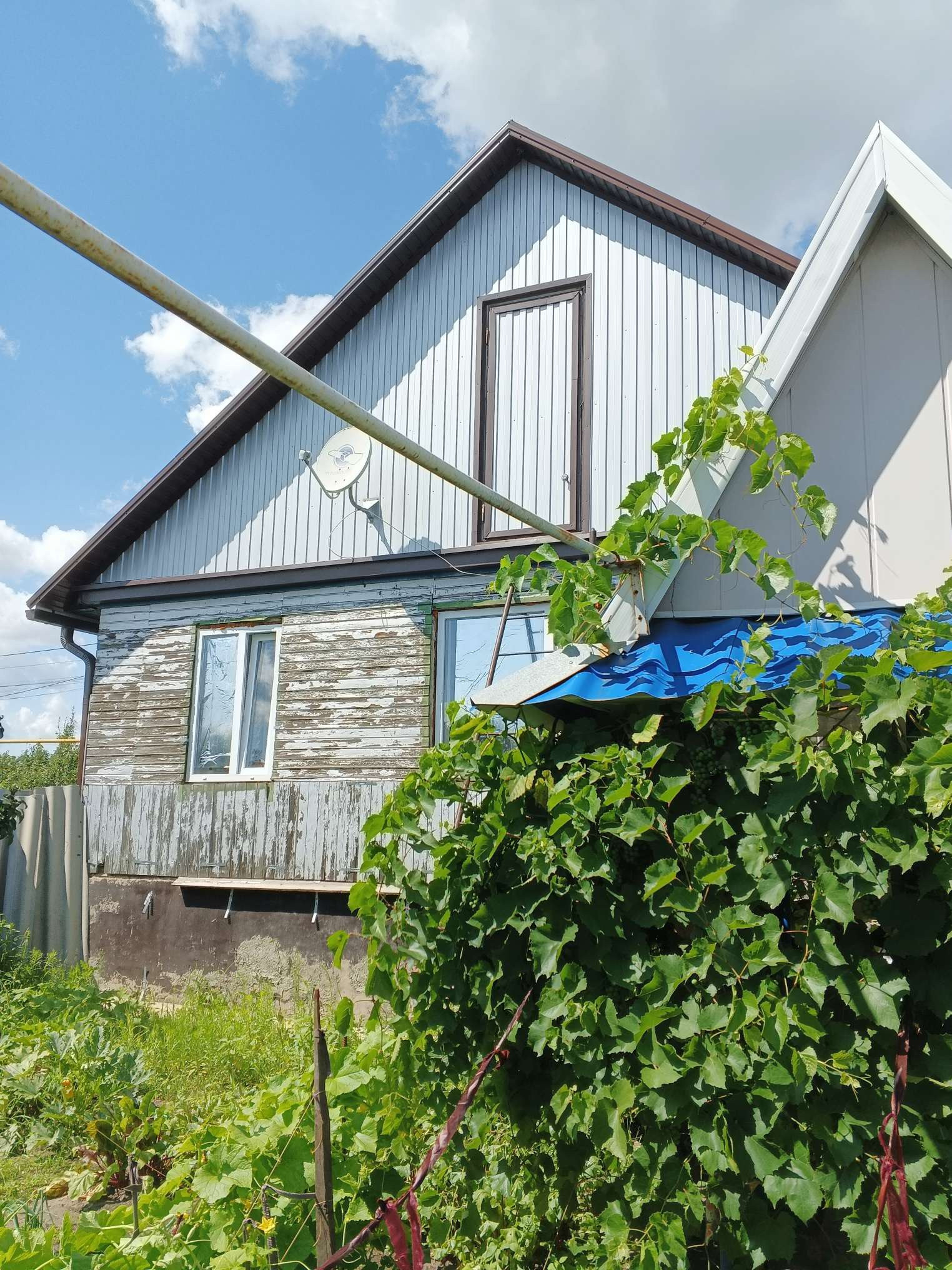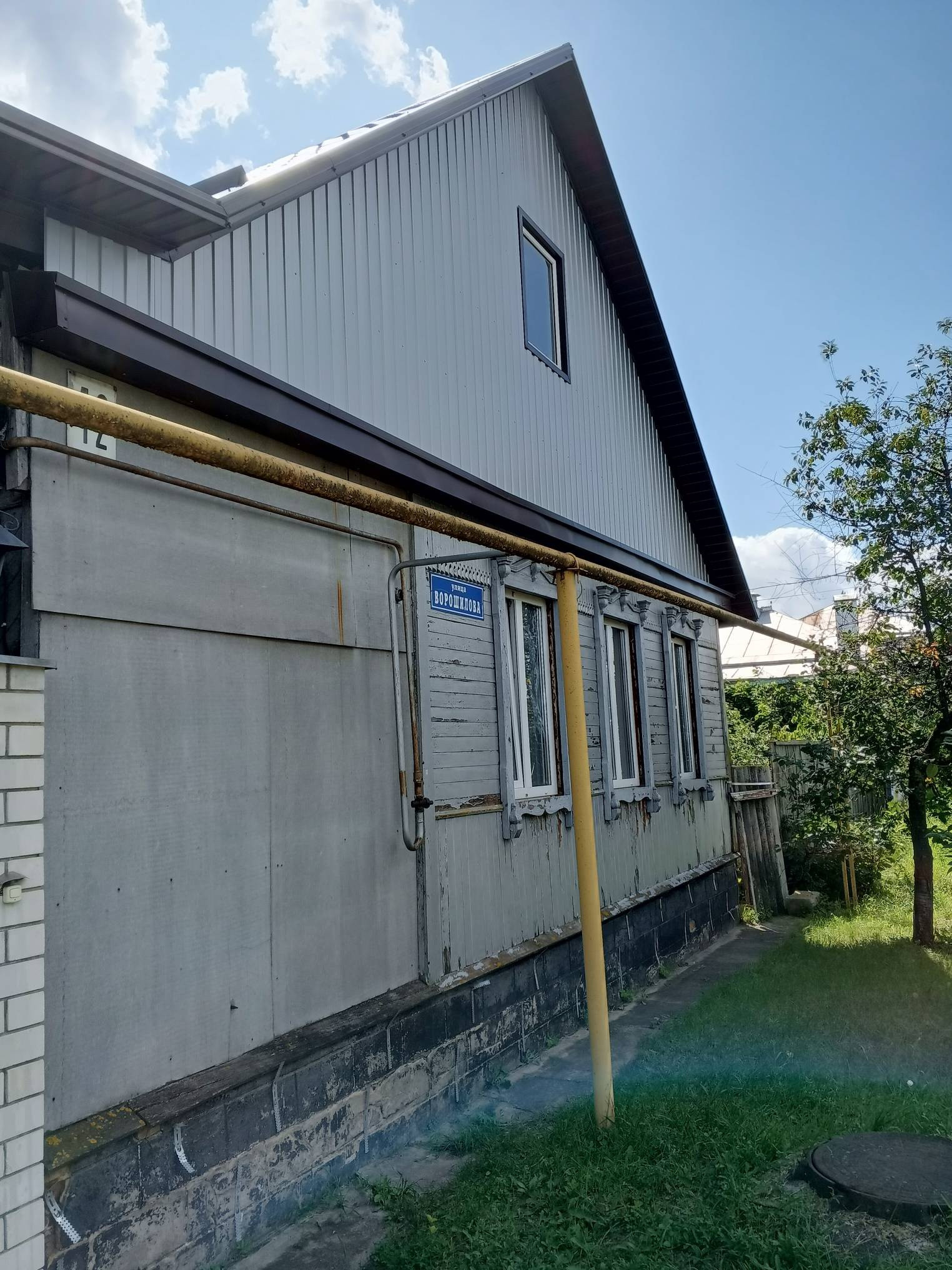 Дом в очень хорошем месте, рядом школа, детский сад, магазины, остановка. Новая крыша переходящая в навес из металлоконструкции во дворе. Пластиковые окна, новый котёл. Большая кухня 16 м², санузел совместно, отделка кафель. Во дворе новый гараж на две машины и две комнаты для бани ( для парилки и душевой). Хоз постройки, беседка, виноградник. Высокий фундамент.