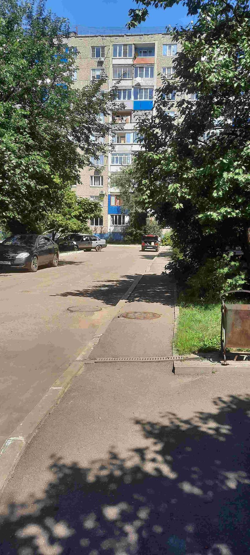 Во дворе детская площадка, парковка.