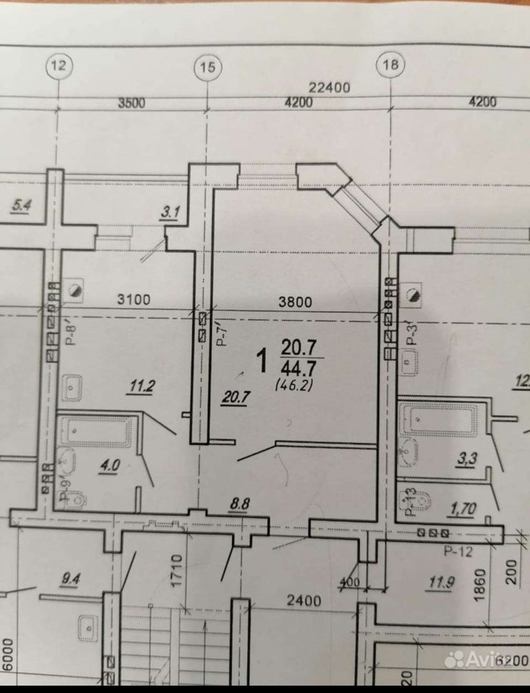 Общая площадь 44.7 м2