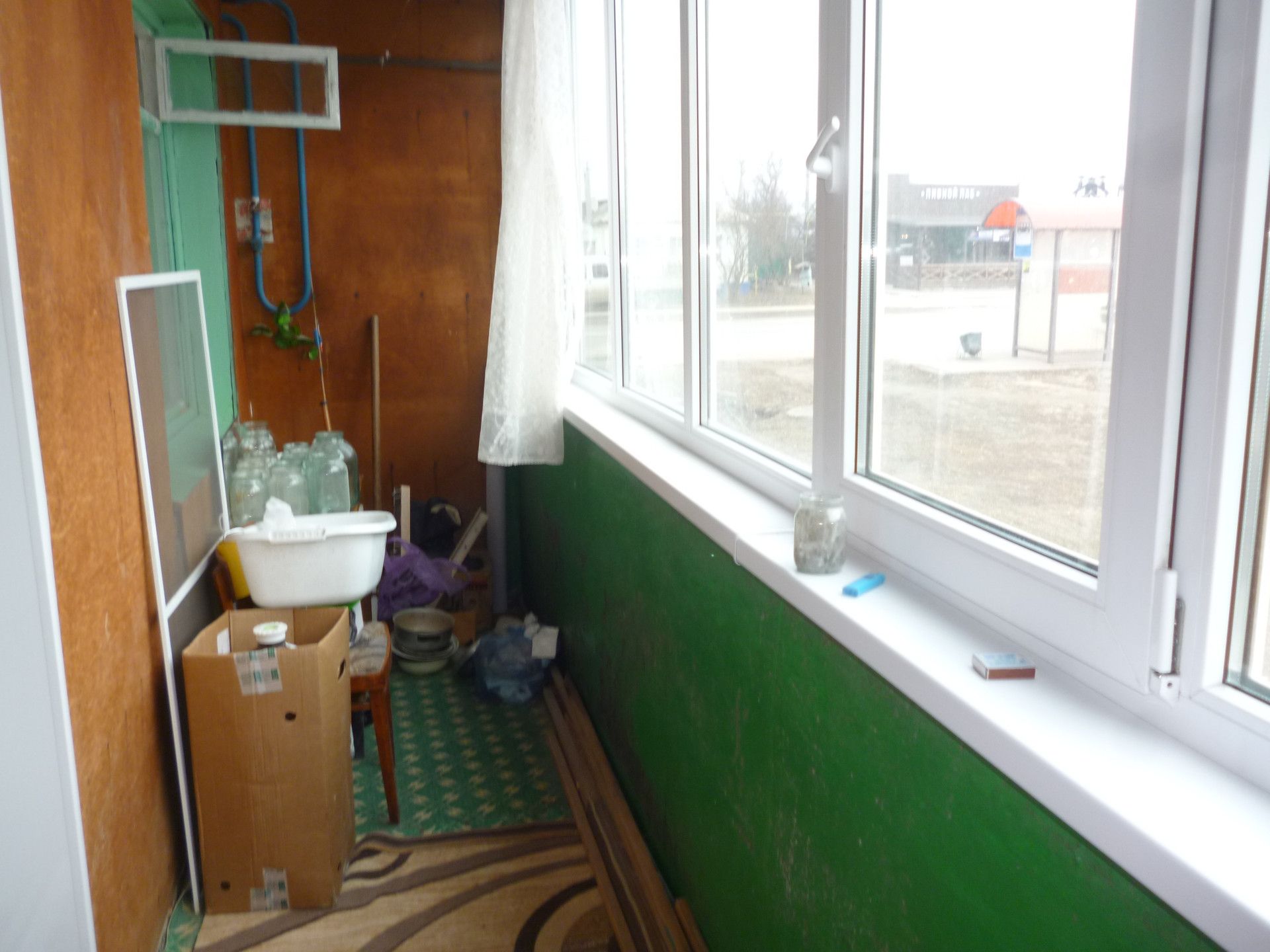 Лоджия застеклена пластиковыми рамами.