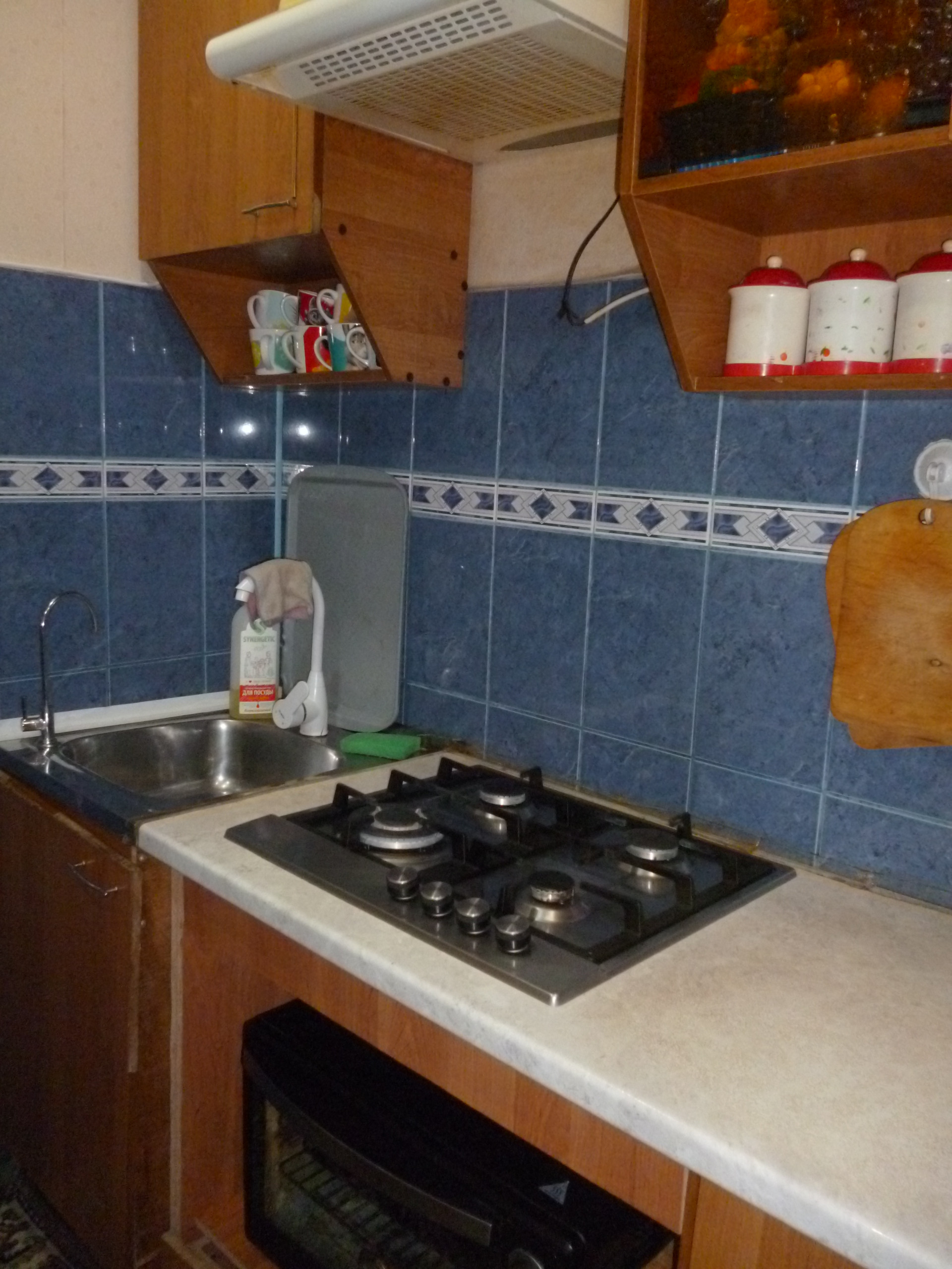 стены на кухне в кафеле.