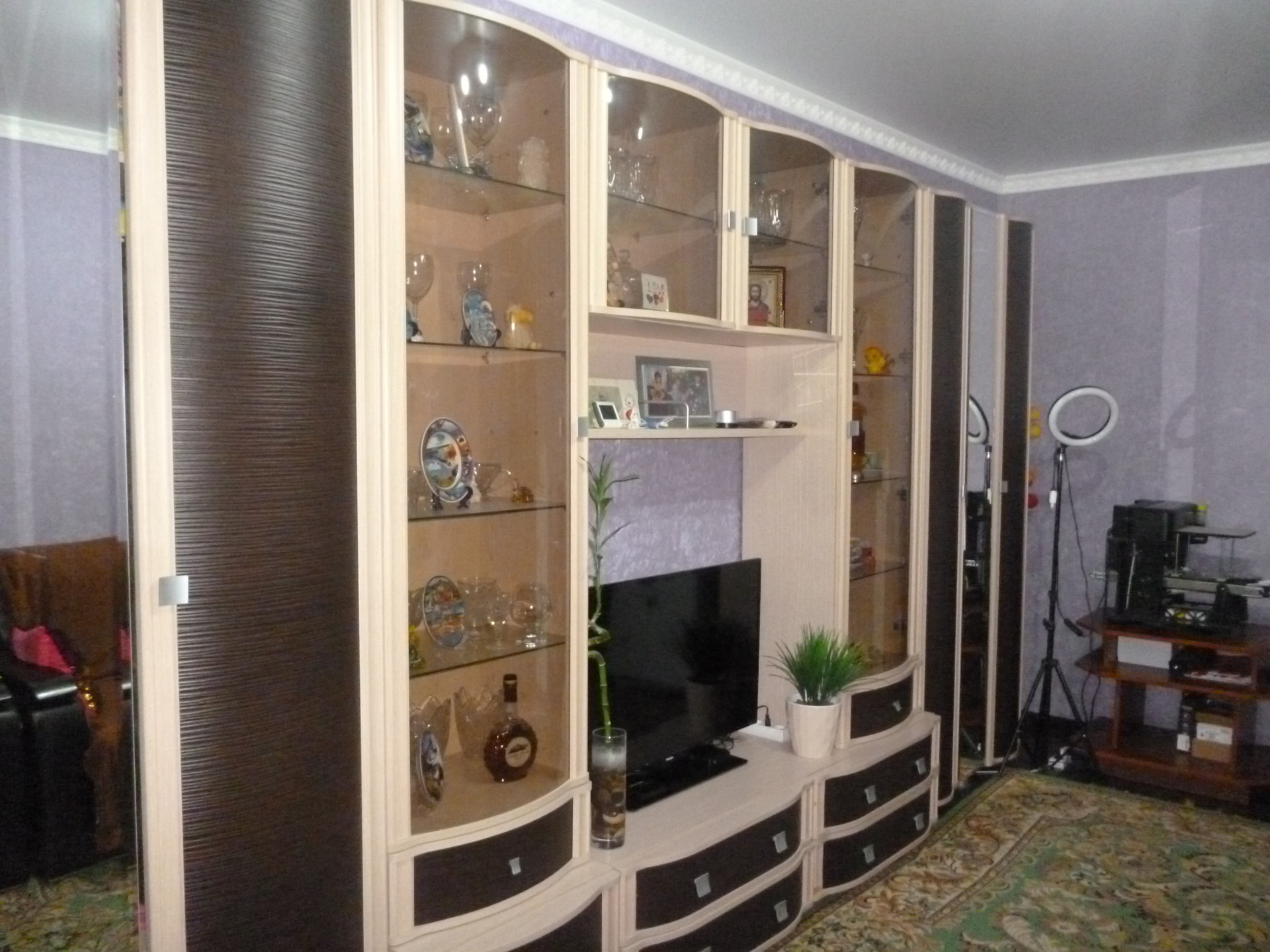 Окна квартиры выходят на разные стороны дома, за счет чего обеспечивается естественное вентилирование. В квартире частично остается мебель.