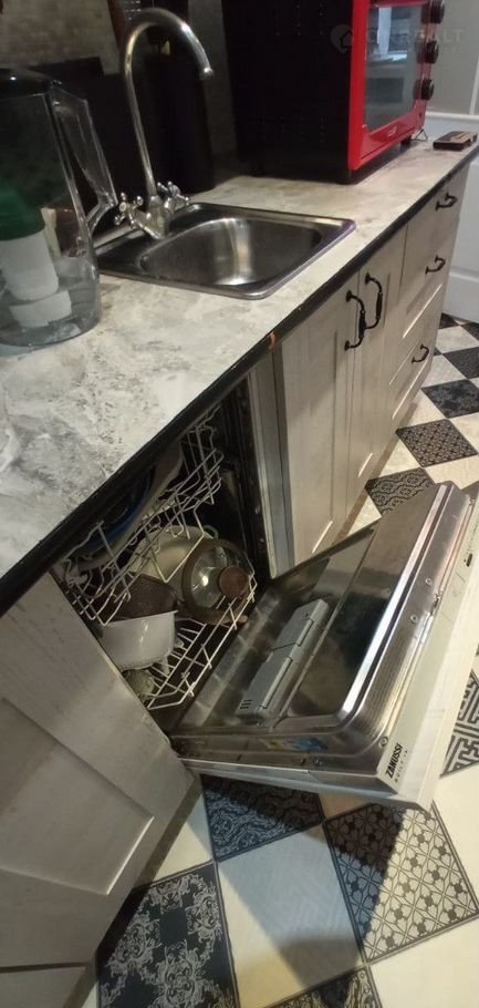 Остается вся мебель, а также бытовая техника (стиральная машинка, посудомоечная машина, холодильник, СВЧ-печь).
