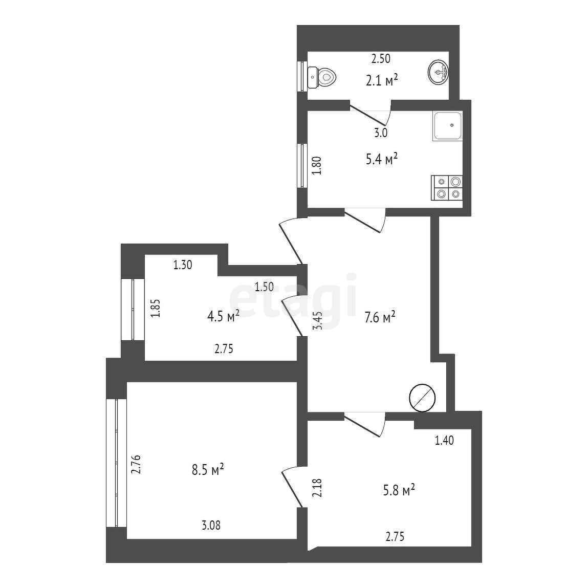 Общая площадь 34 м2