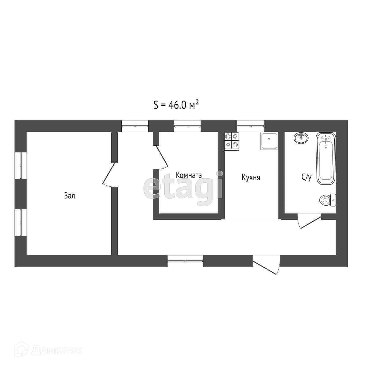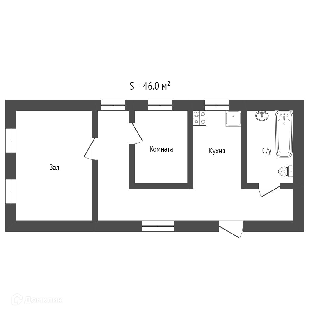 Общая площадь 46 м2