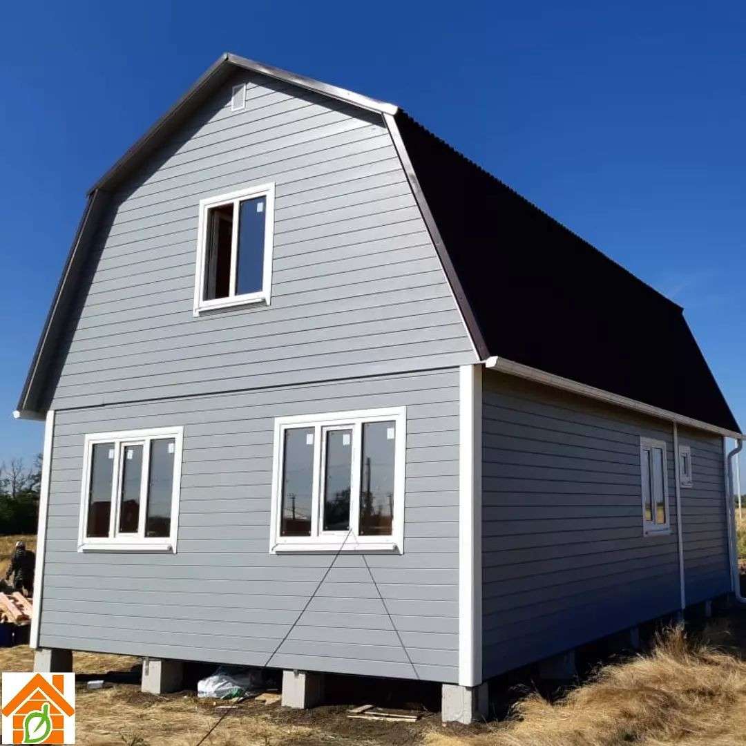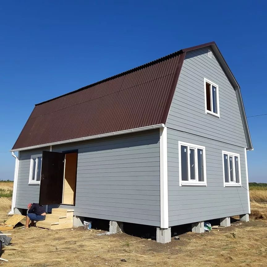 Дом каркасно-щитовой, буронабивной фундамент, толщина стен 120 мм, фасад Евровагонка, внутри вагонка Штиль, крыша металлочерепица, срок строительства 14 дней