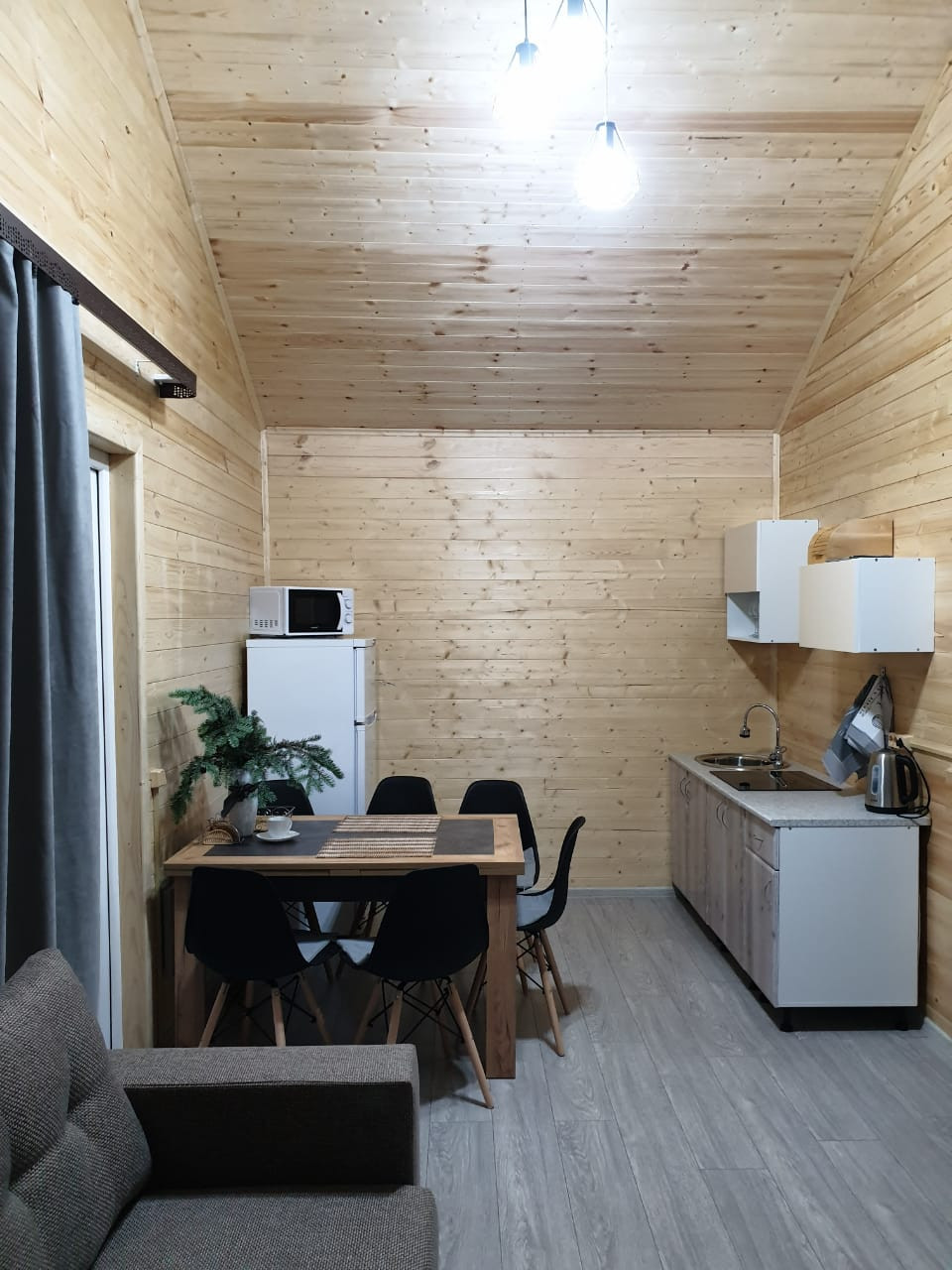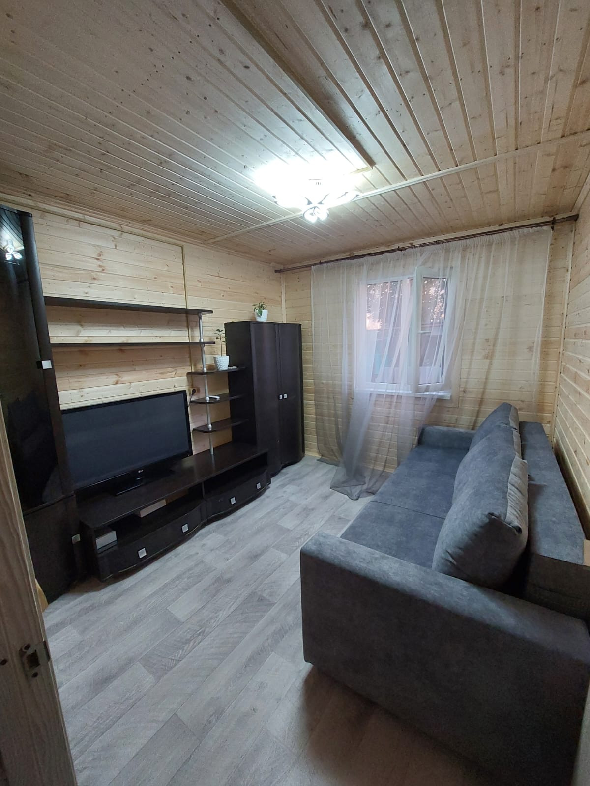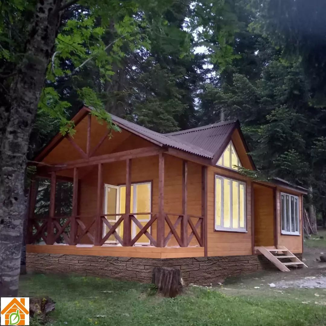 Дом каркасно-щитовой, буронабивной фундамент, толщина стен 120 мм, фасад Евровагонка, внутри вагонка Штиль, крыша металлочерепица, срок строительства 14 дней