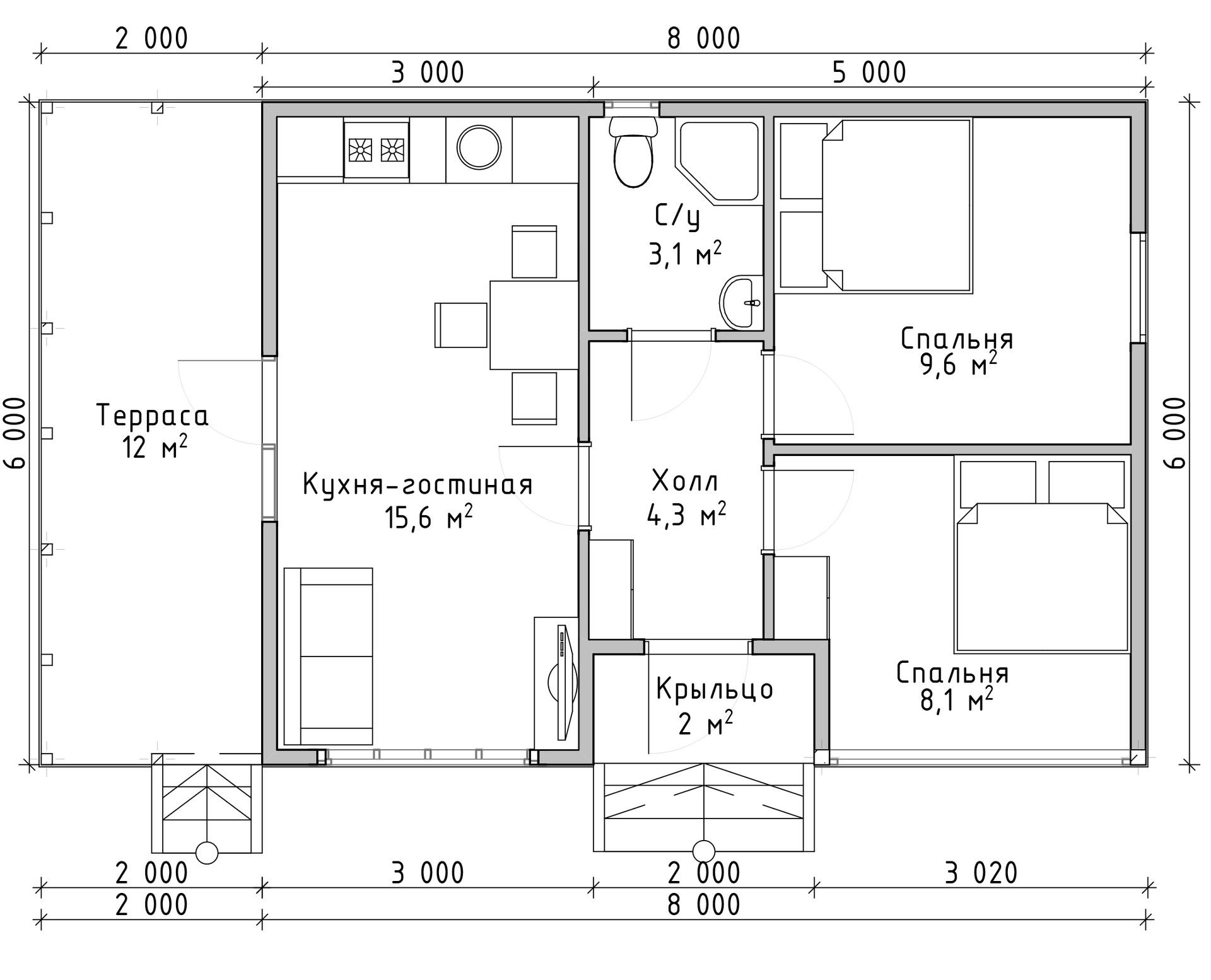 Общая площадь 48 м2