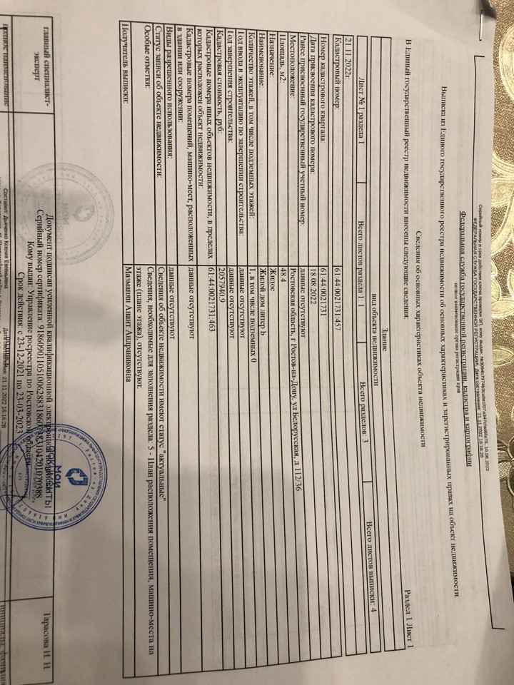Стоимость недвижимости: