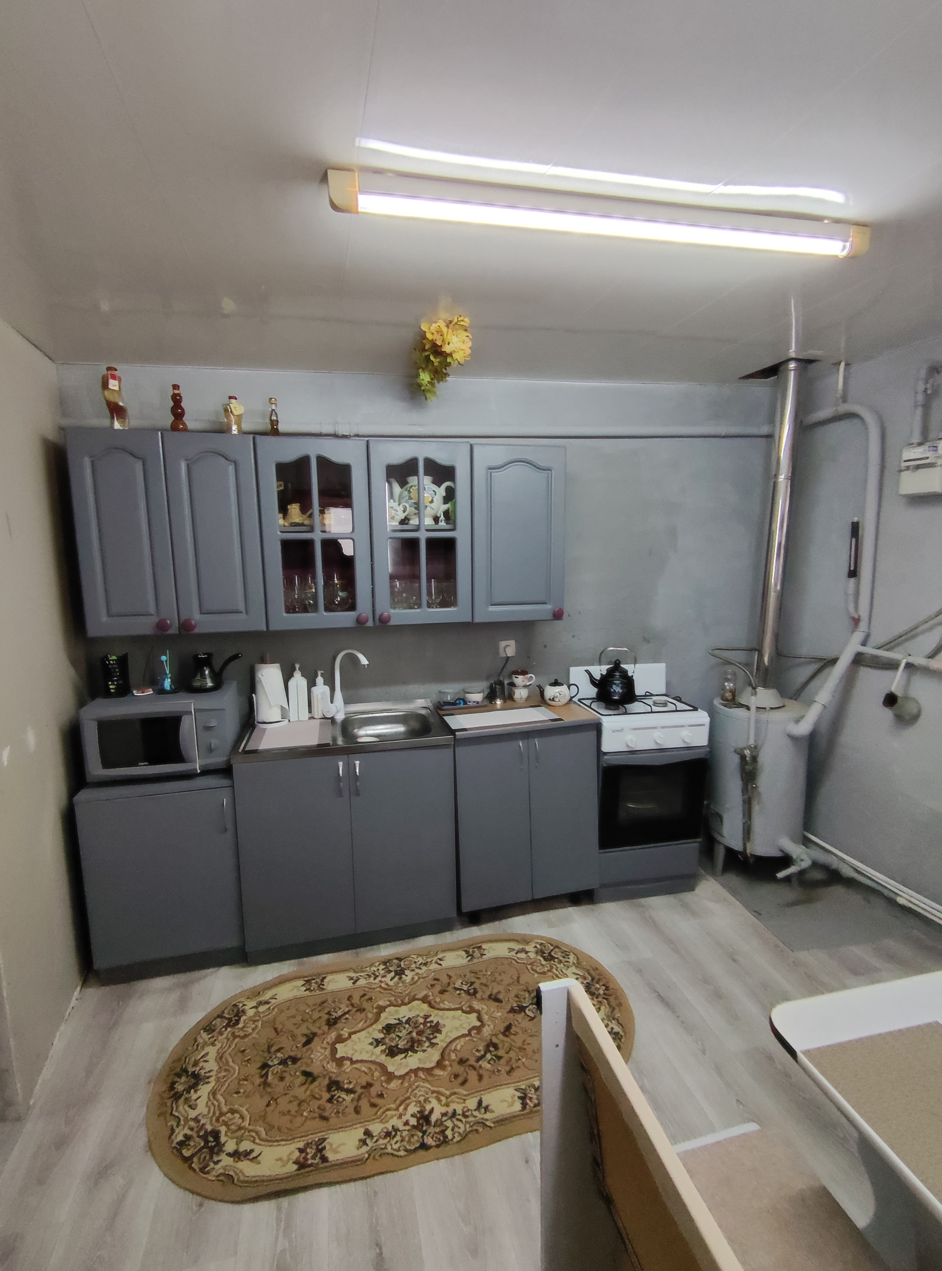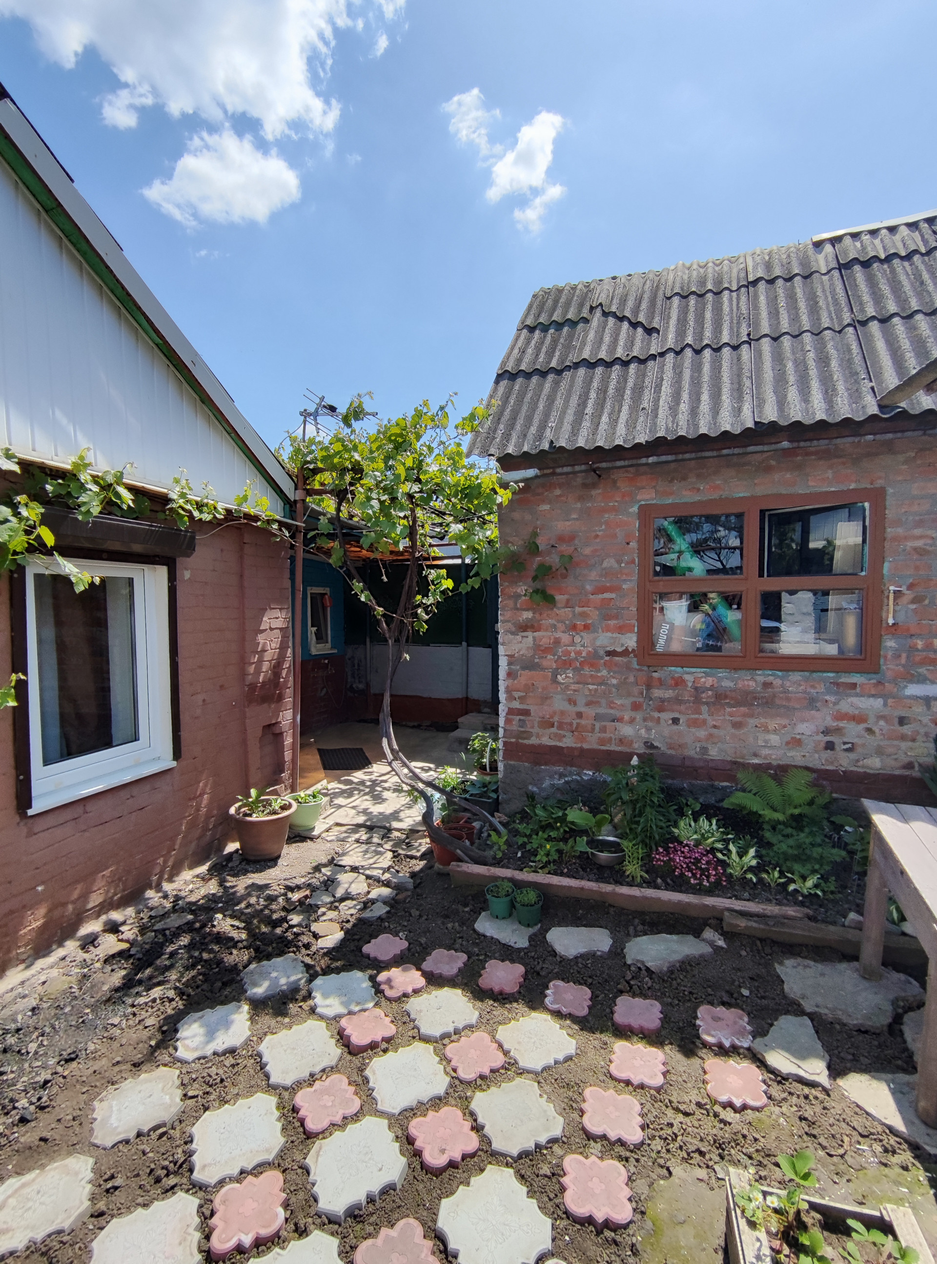 Отдельный дворик со своим входом, есть где посадить цветы и пожарить шашлыки). На участке есть отдельная кухня с подвалом по всей площади.