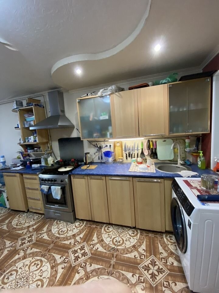 В доме есть все коммуникации , 4 комнаты, 1 санузел, кухня 18кв2, двор асфальтированный. Есть навес под 2 машины. На заднем дворе дома расположен сарай с санузлом и летним душем. Сарай построен из кирпича. Также есть зона барбекью и летняя веранда.