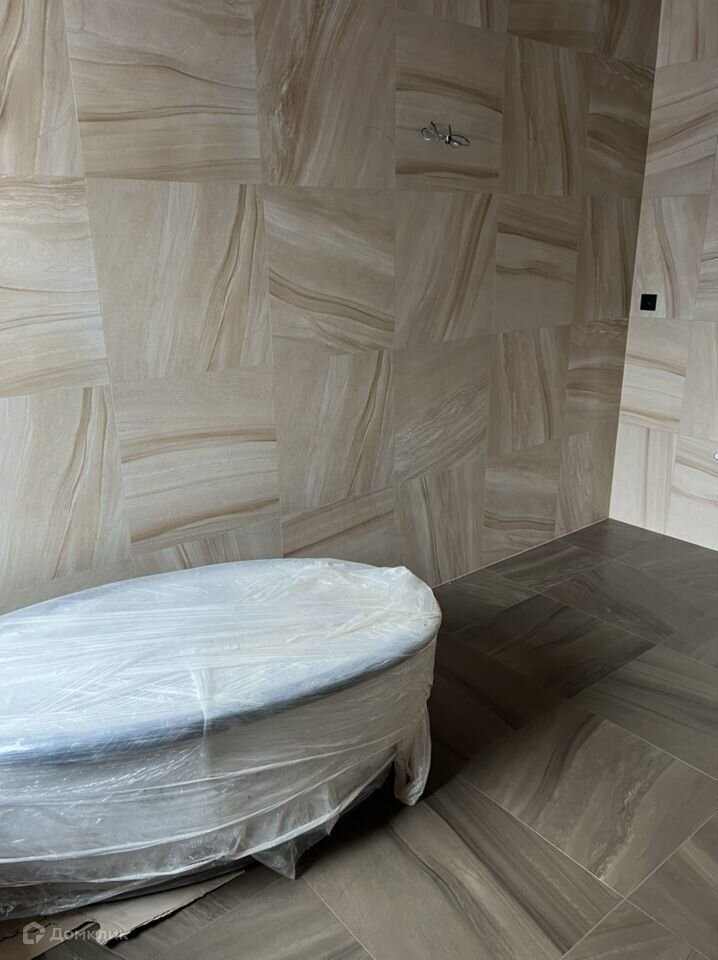 Мебель на фото (кресла и обеденный стол) - временные. По дизайнерскому проекту в центре зала - огромный модульный диван. В санузлах уже частично установлена/куплена сантехника.