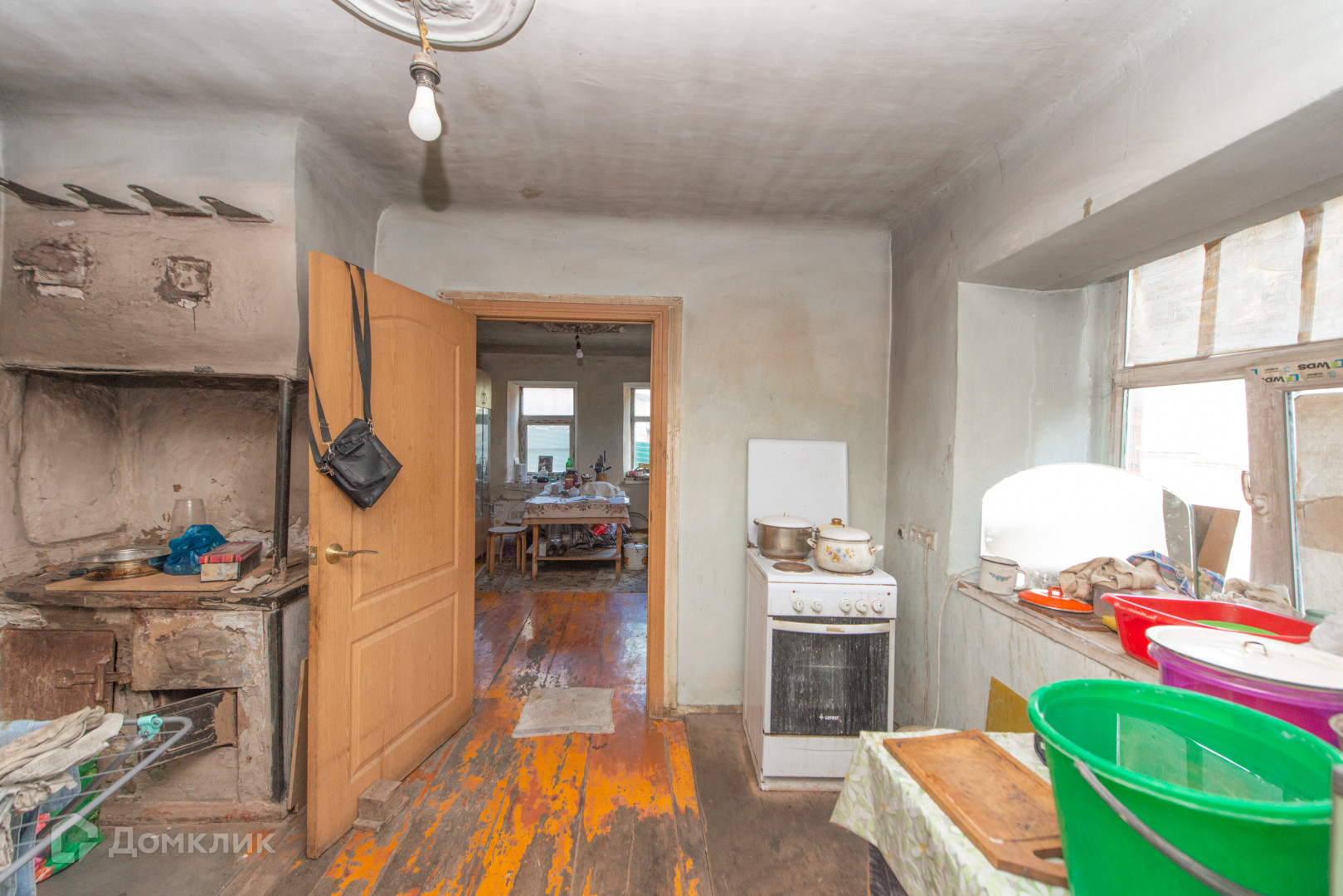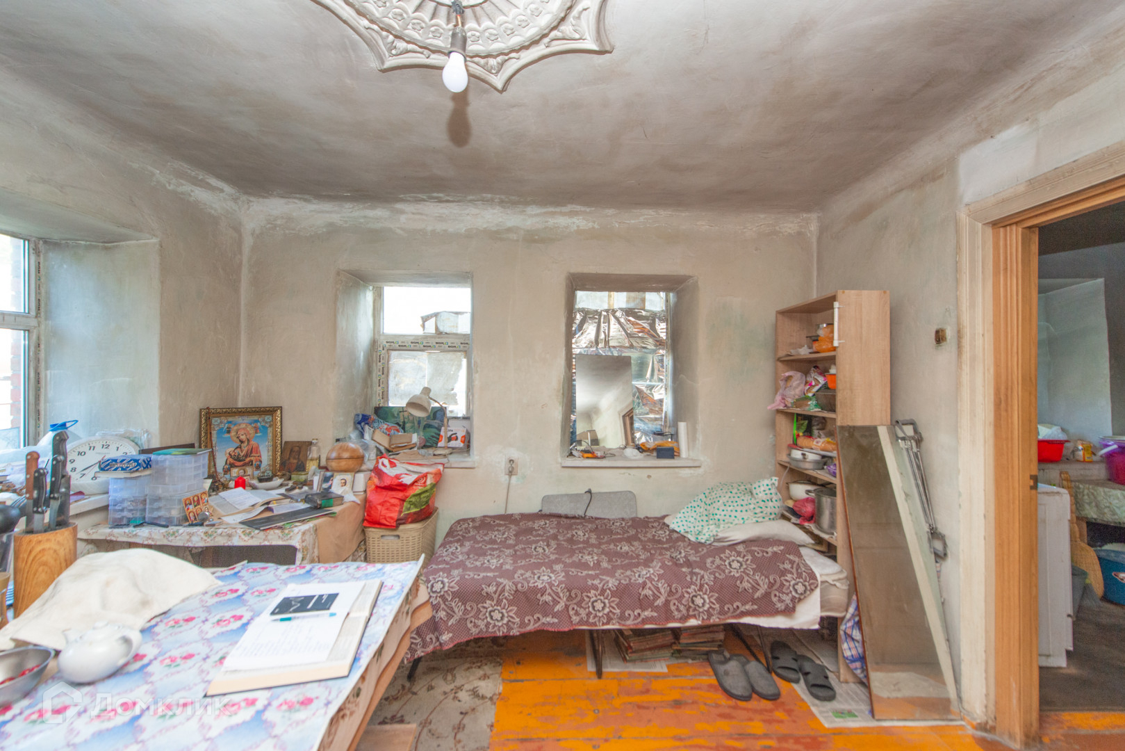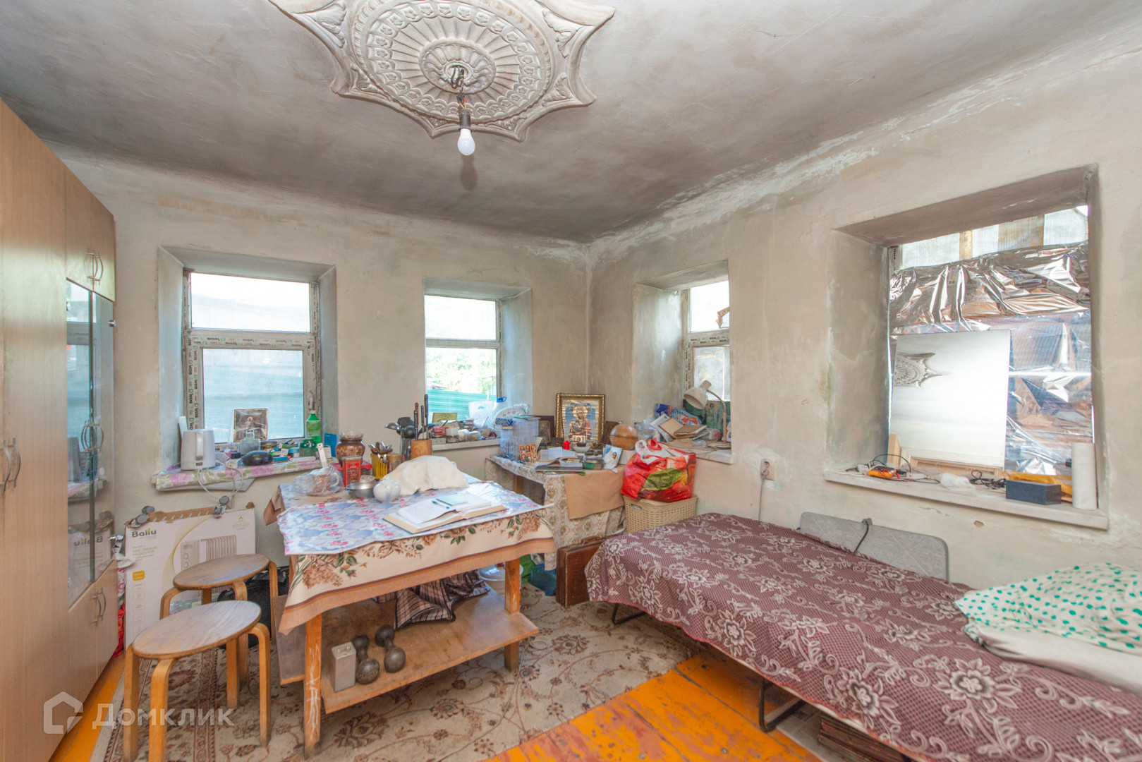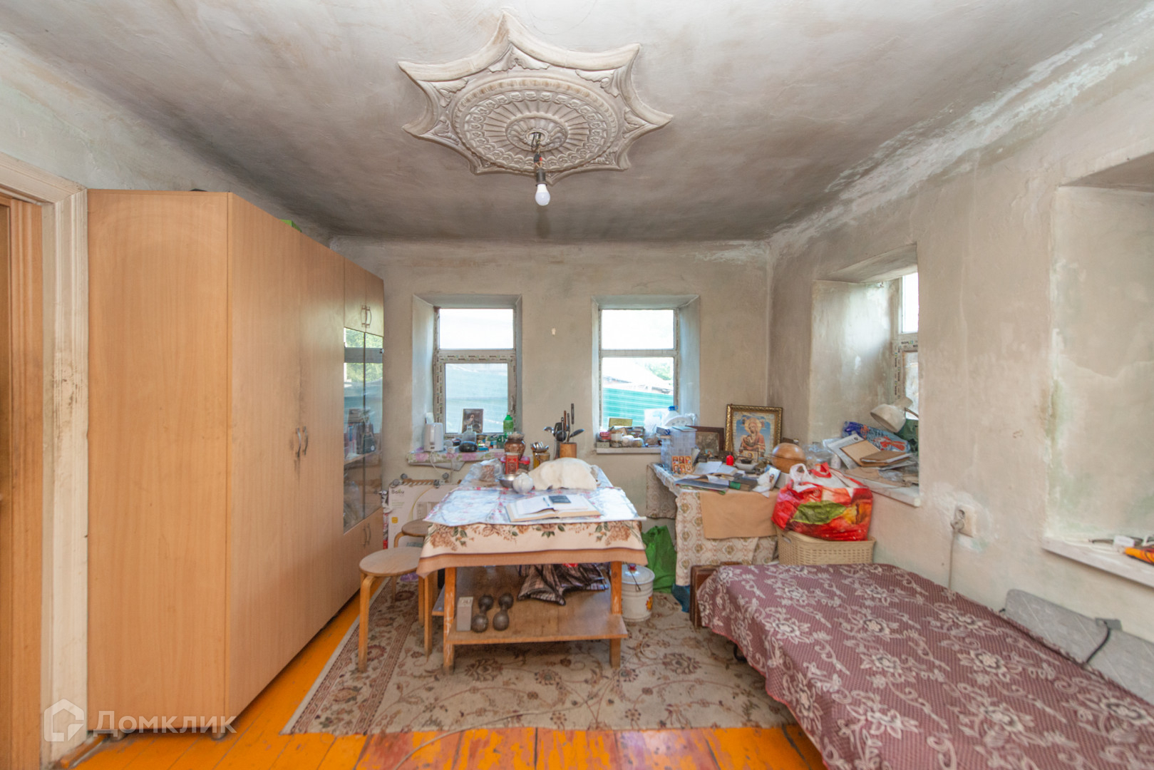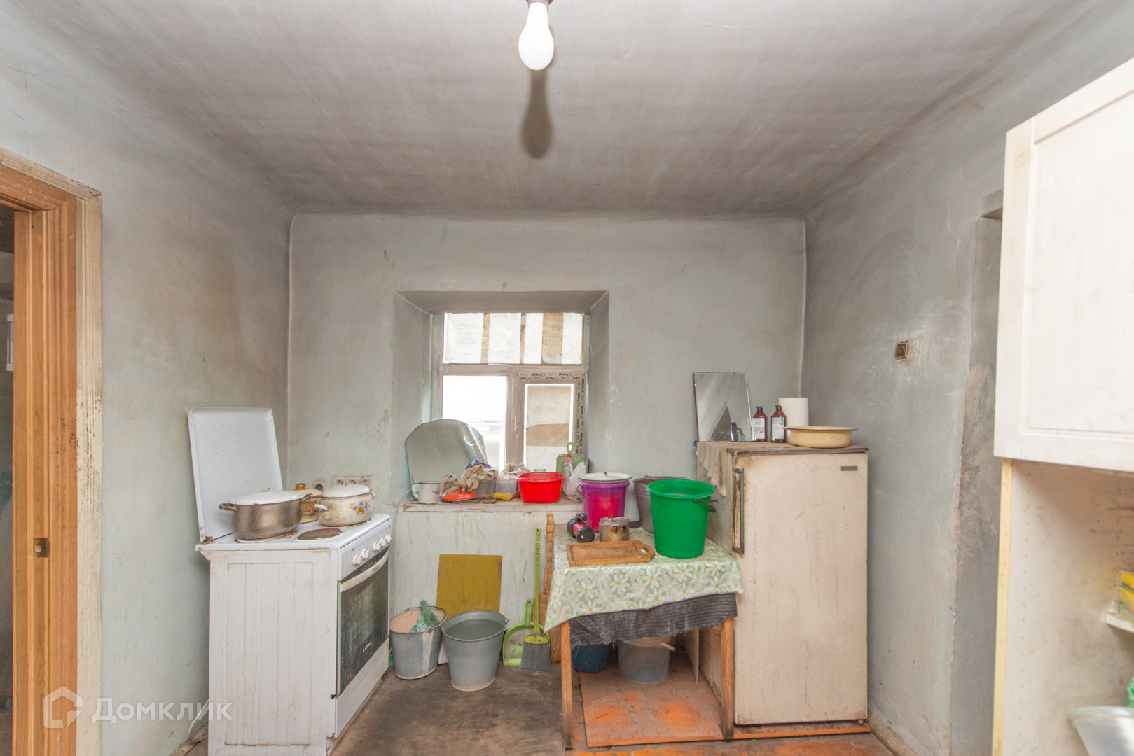 Дом обложен шлакоблоком.В доме 4 комнаты .Во дворе есть баня.Из бани можно провести воду,есть выход.