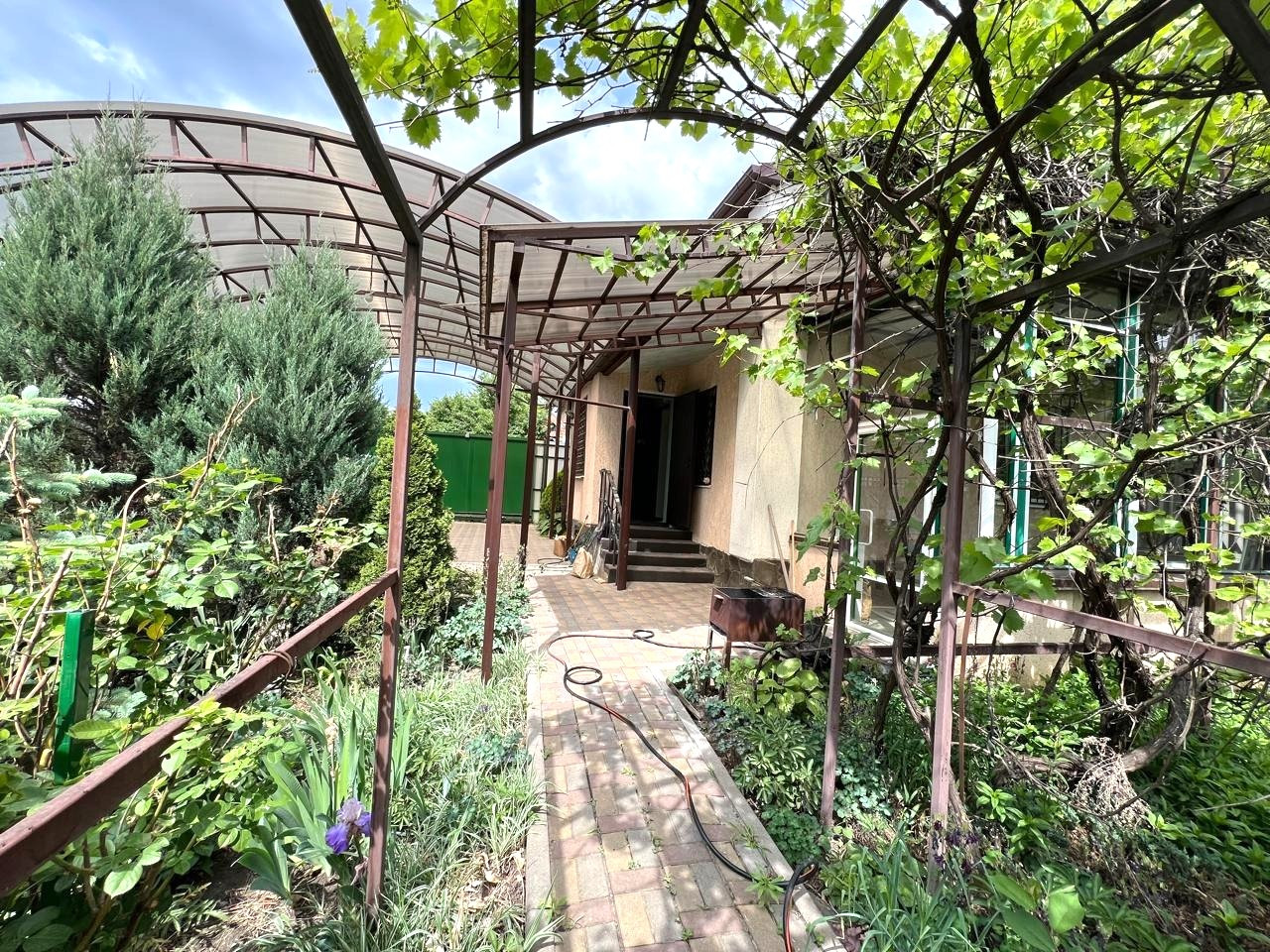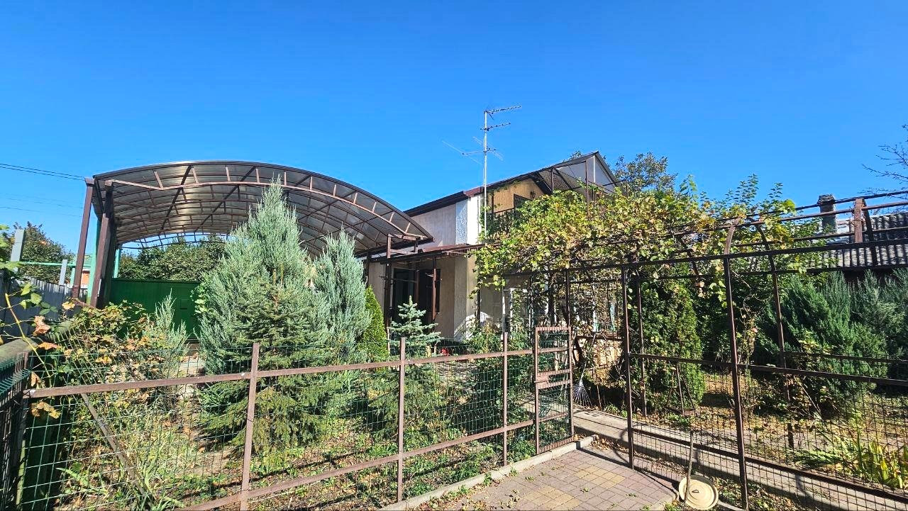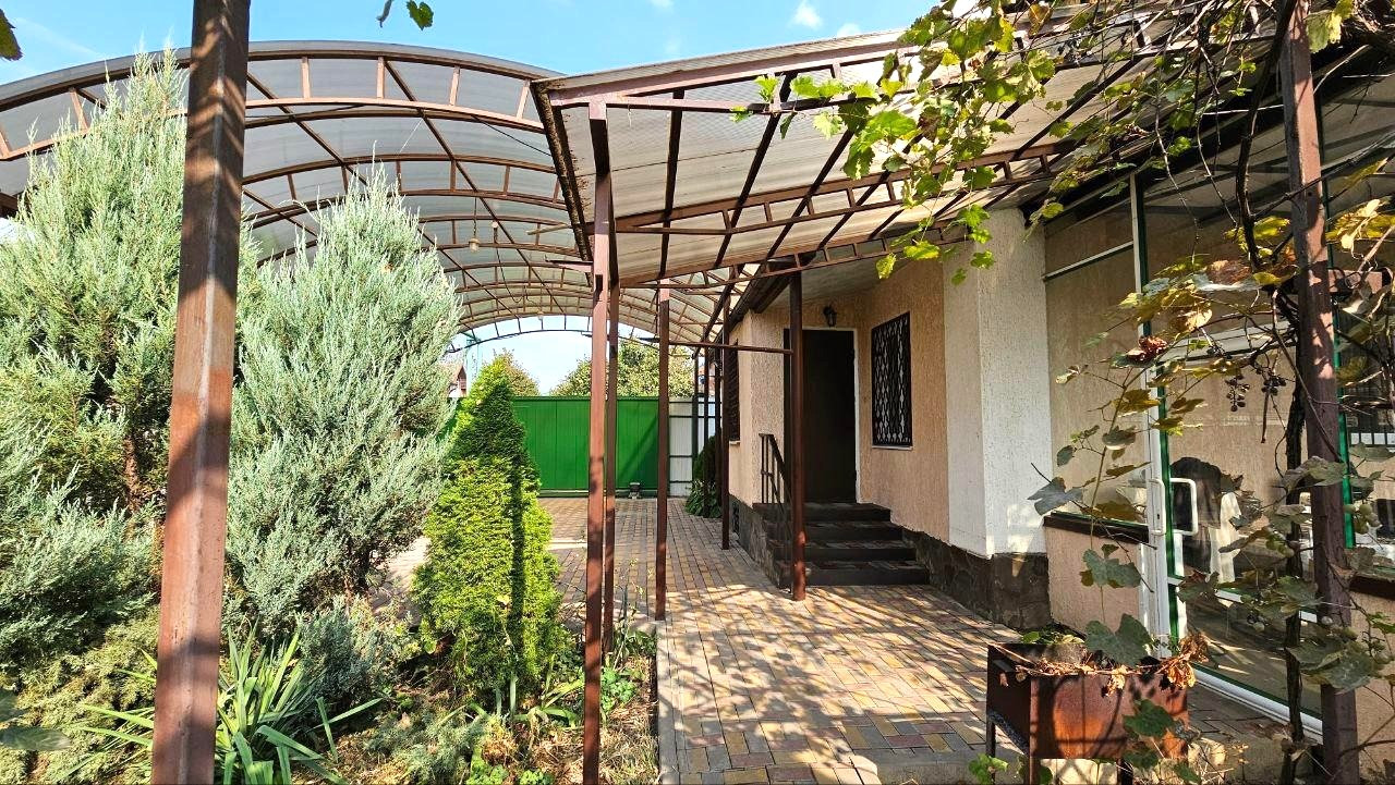 Все коммуникации заведены в дом, свет, газ, вода, интернет, видеонаблюдение. Помимо городского водопровода, есть скважина и система для полива. Во дворе летний душ и туалет, вольер для собаки. Двор выложен тротуарной плиткой, въезд для 2-х автомобилей с поликарбонатным навесом, автоматические ворота шириной 4м.Двор очень зеленый -декоративные пихты, виноград, розы, фруктовые деревья.