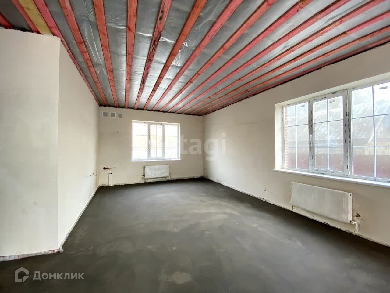 Кровля серая металлочерепица.Высота потолков -3 метра.