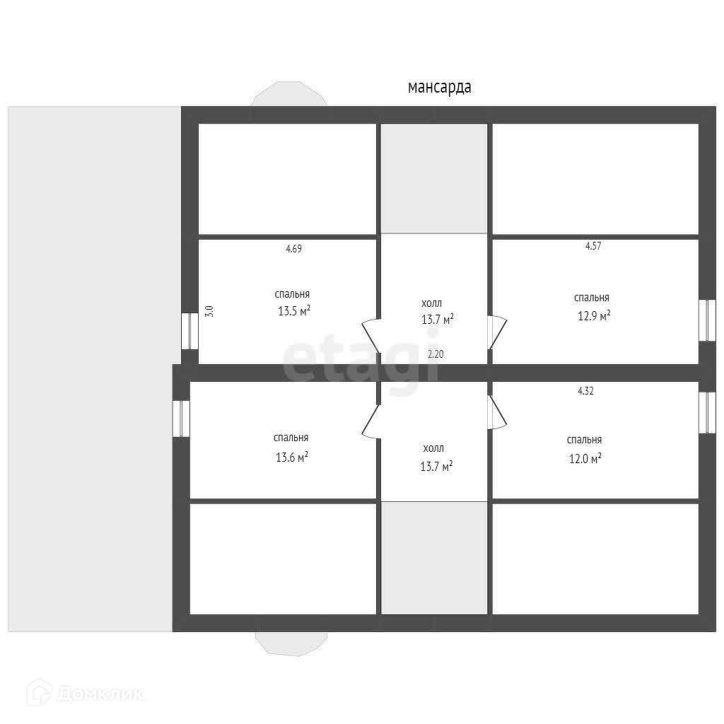 Мансардный этаж включает в себя четыре функциональные комнаты по 14 м²: библиотеку, гардеробную и комнаты для гостей. Цокольный этаж, занимающий весь периметр дома, оборудован котельной, подсобными помещениями и комнатой для домашнего кинотеатра — идеальное место для отдыха и развлечений.
