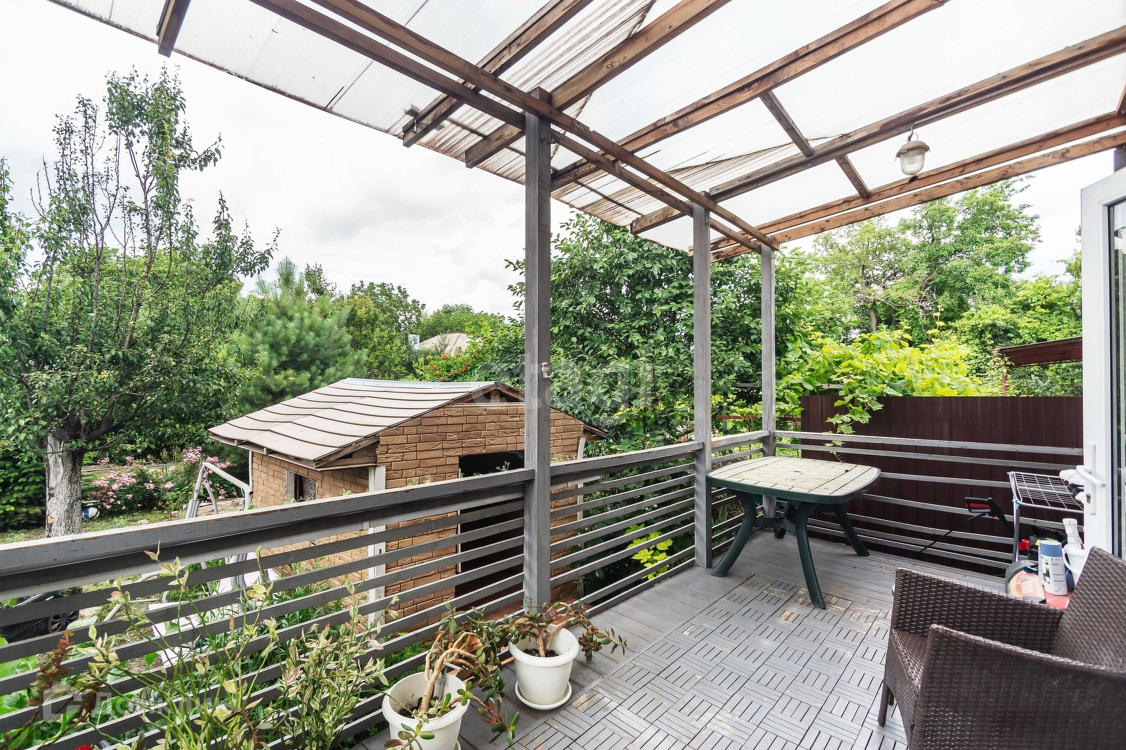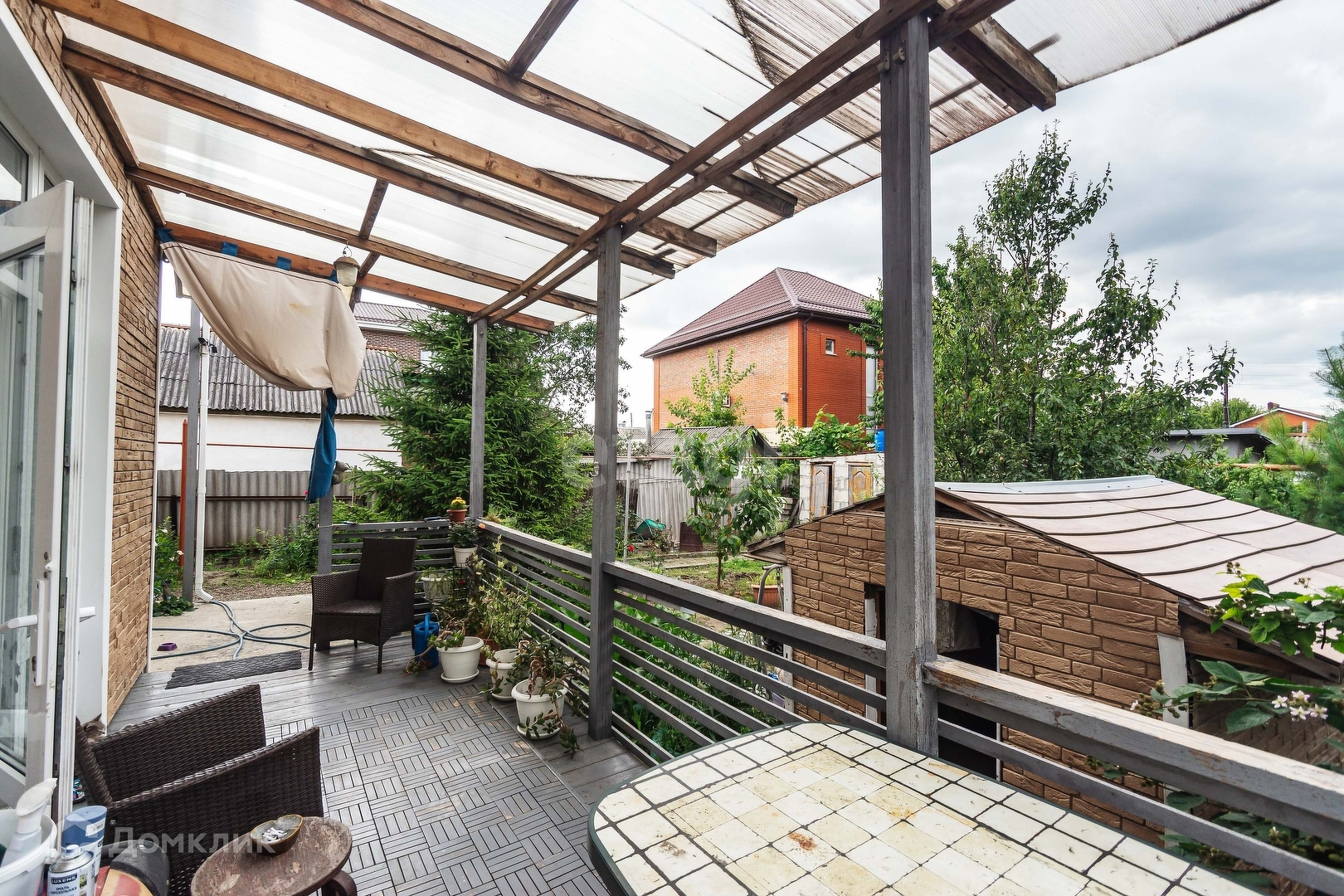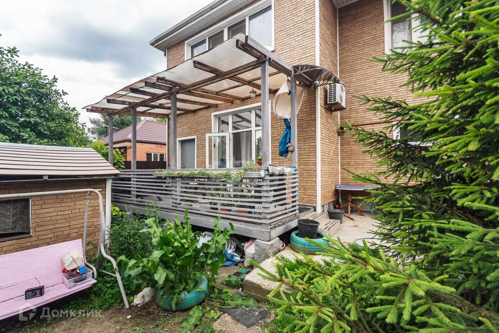 Двор большой с верандой и дом для игр ребенка