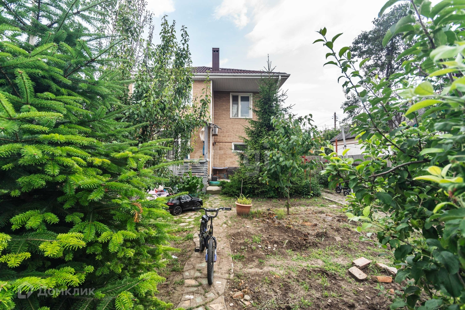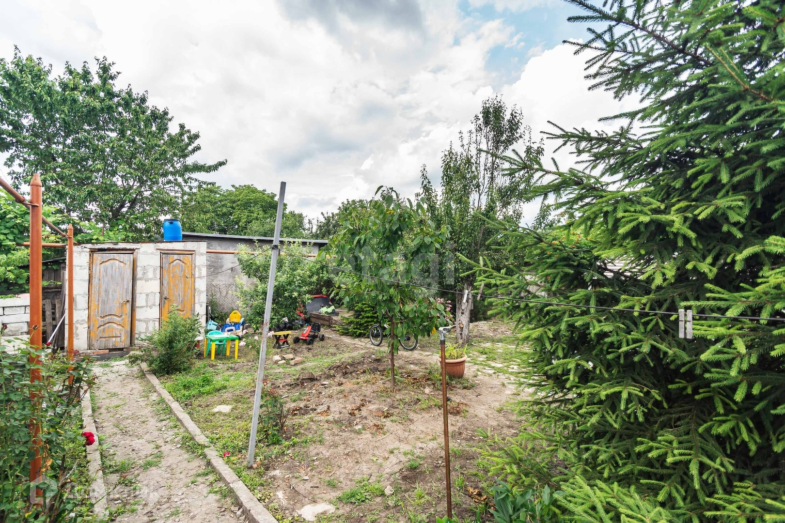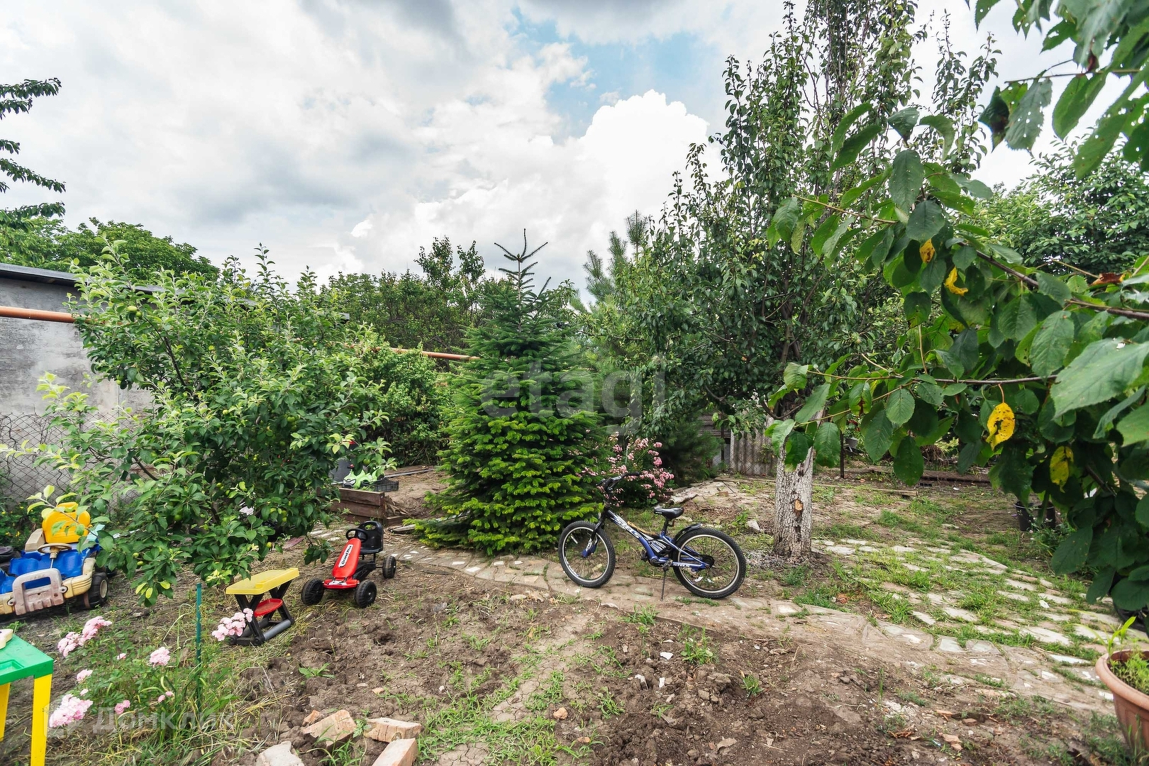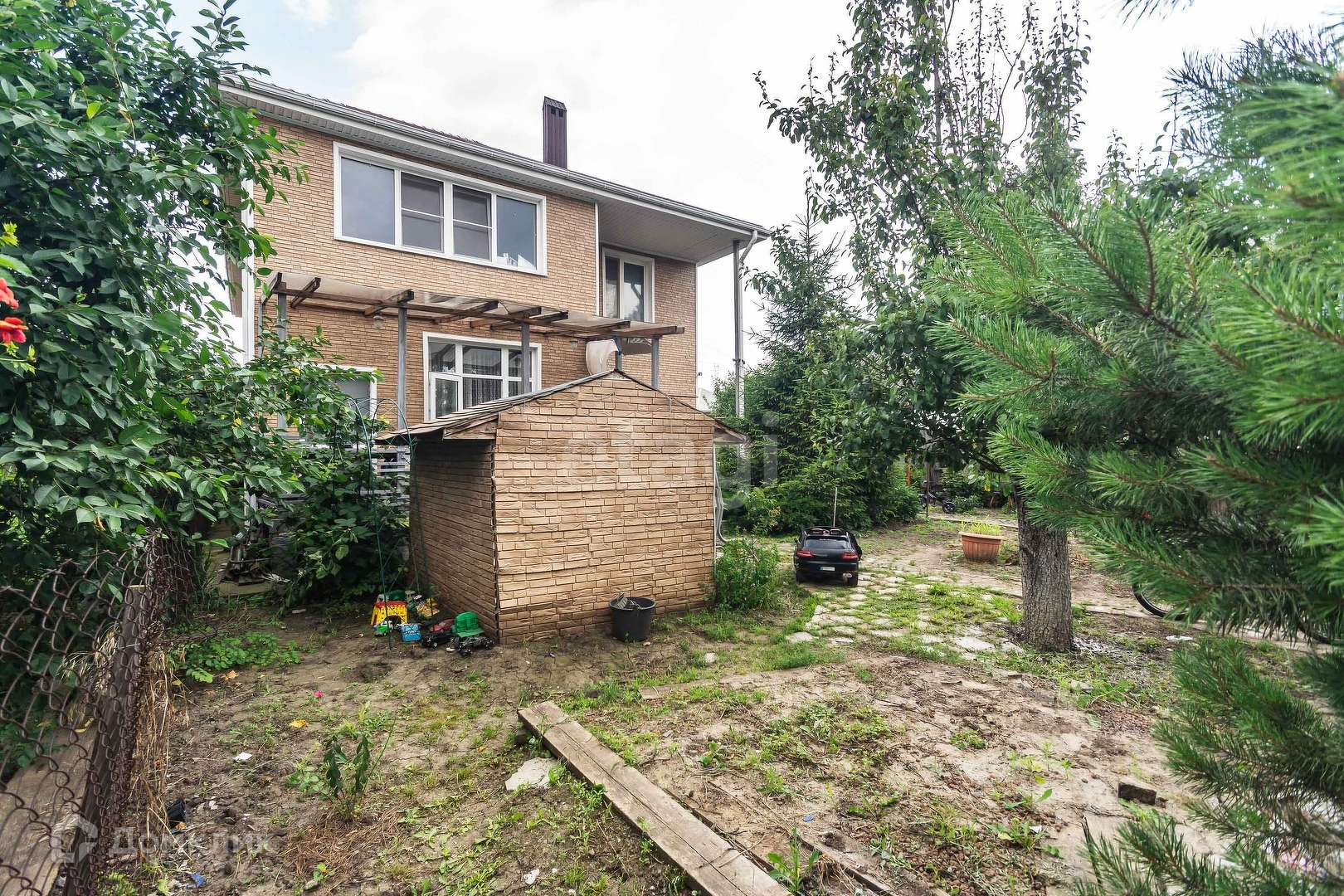 Двор большой с верандой и дом для игр ребенка