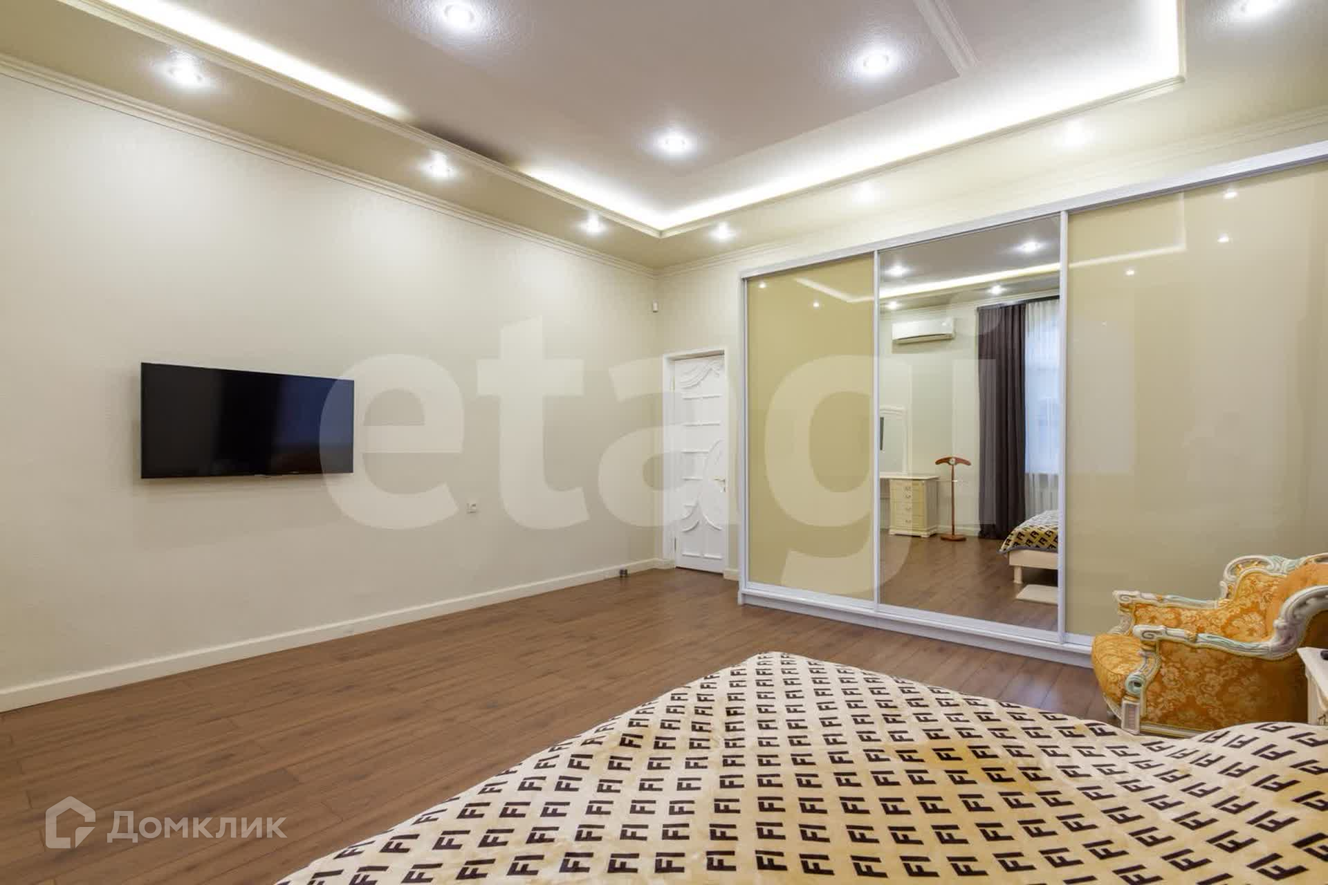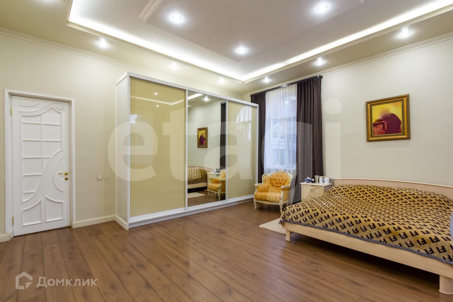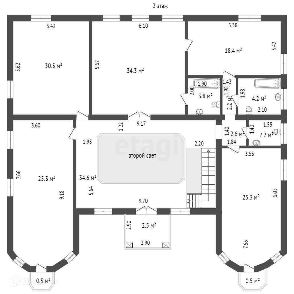 На втором этаже: 4 спальные комнаты, 1 гардеробная, раздельный санузел, также есть отдельный санузел в хозяйской комнате. Гардеробная вместительная, есть 2 входа в нее, при желании может быть переоборудована еще в одну спальную.