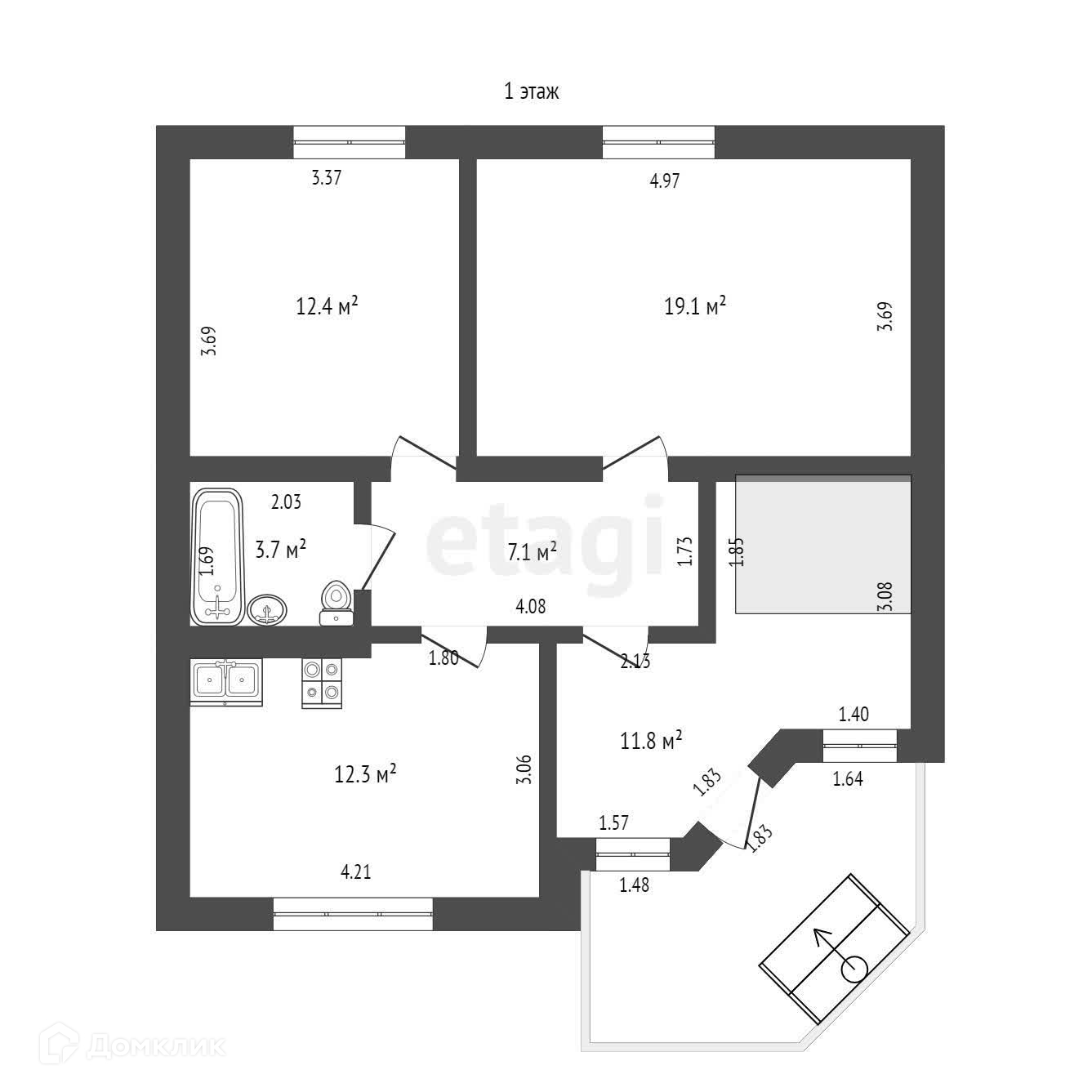 - санузел на каждом этаже, эл.водонагреватель, ванна ;