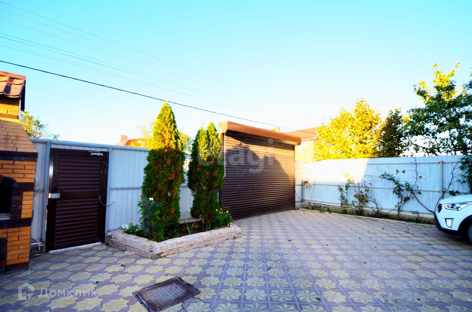 На территории участка расположены сарай, беседка и мангальная зона, а двор выложен плиткой.