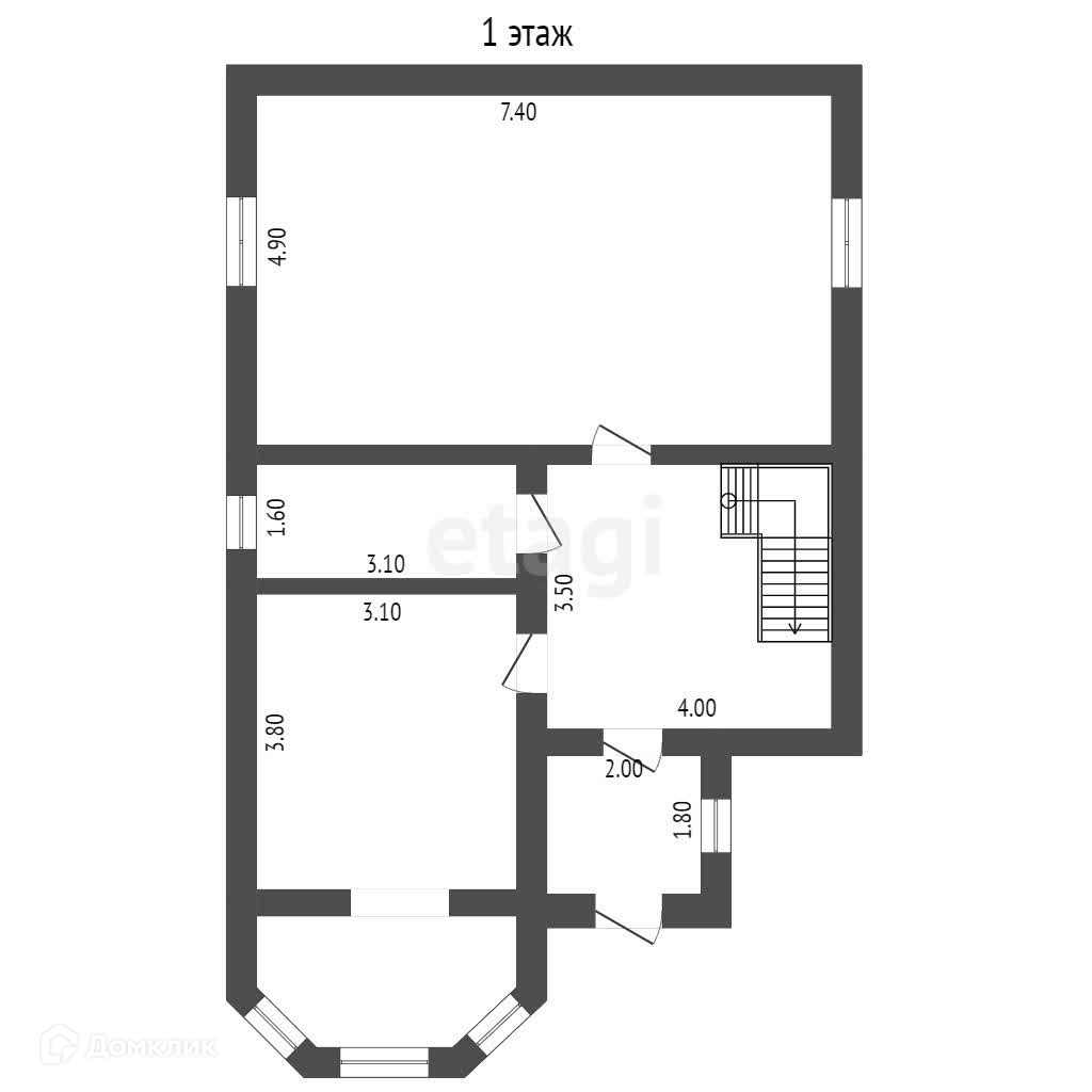 В доме 3 спальни, большая гостиная (35 кв м), просторная кухня, прихожая и кладовая.