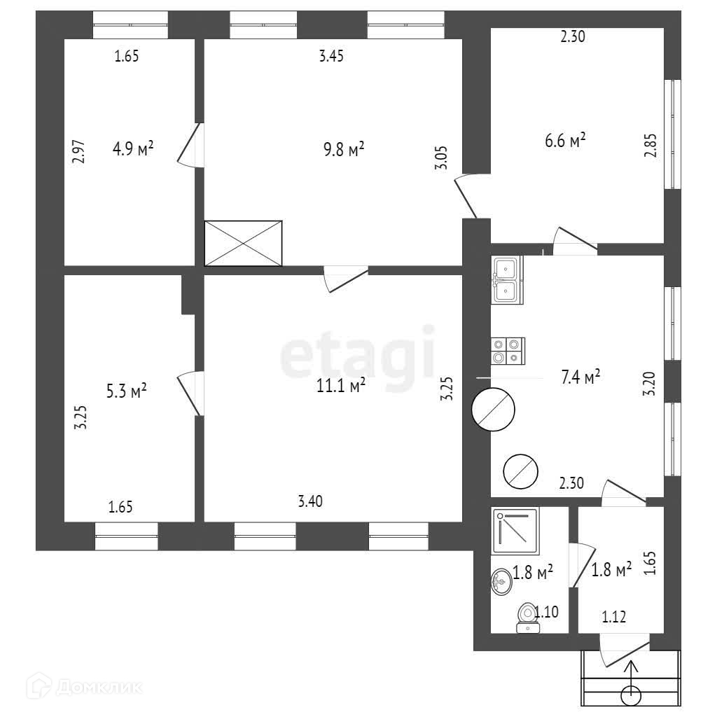 Продается одноэтажный жилой дом площадью 48,7 м.кв на участке 3 сотки. Категория земель ИЖС. Год постройки дома 1957. Стены шлаконаливные. Облицовка кирпичом. Внутри 5 комнат, кухня, санузел.