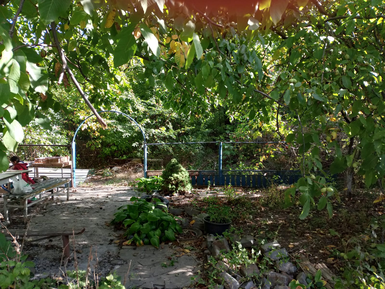 По участку плодовые деревья , орех который очень вкусный, так же малина , клубника, при встречи все расскажу .