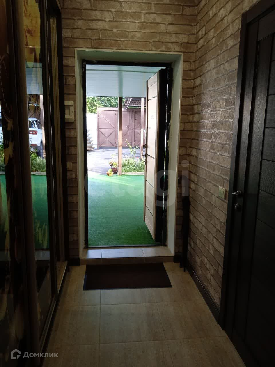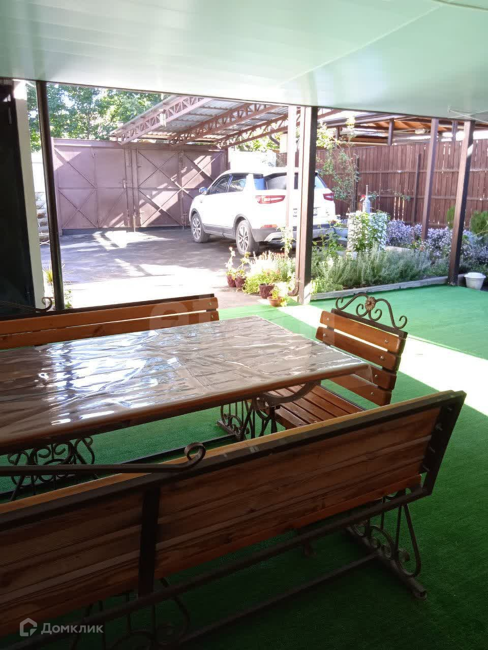 Площадка под автомобиль заасфальтирована (помещается три машины). Есть навес под машину.