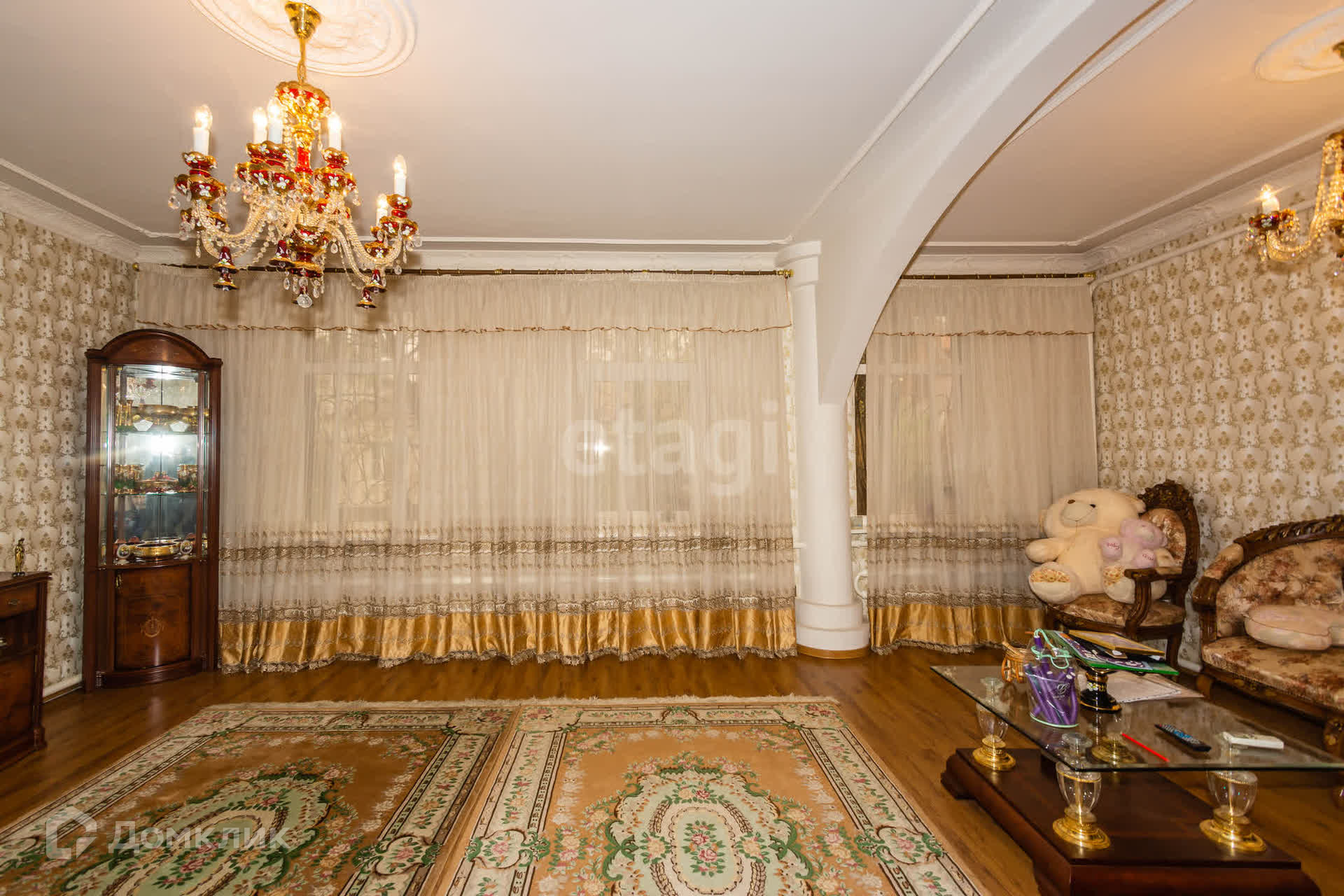 Участок 6.5 соток, во дворе есть ещё дополнительный дом, где на первом этаже большой гараж, а на втором этаже жилая комната. Он отапливается, проведена вода, полностью пригоден для жилья.