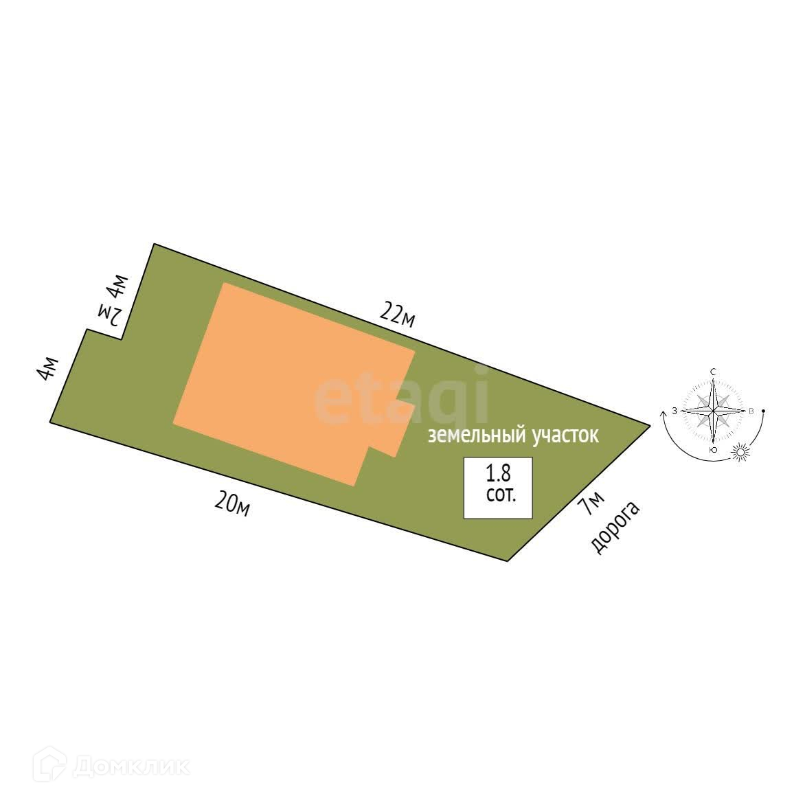 Площадь участка 1.8 сот.