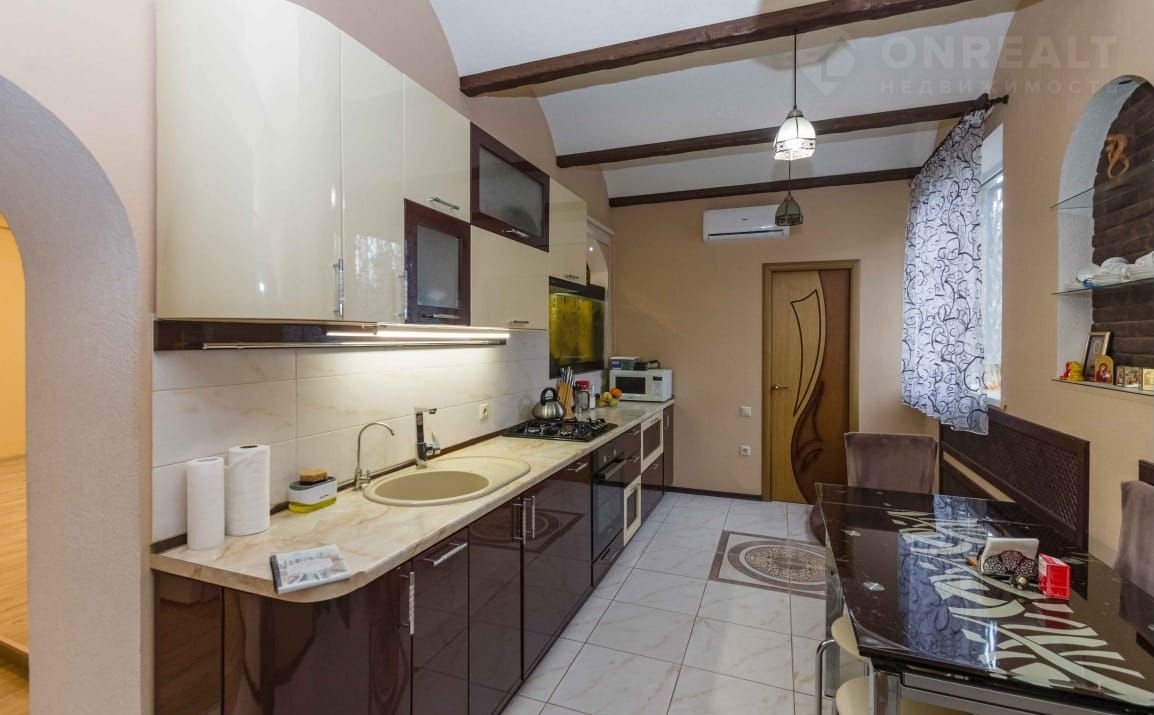 Кухня 20 кв м, современный кухонный гарнитур с качественной встроенной техникой, стол со стульями